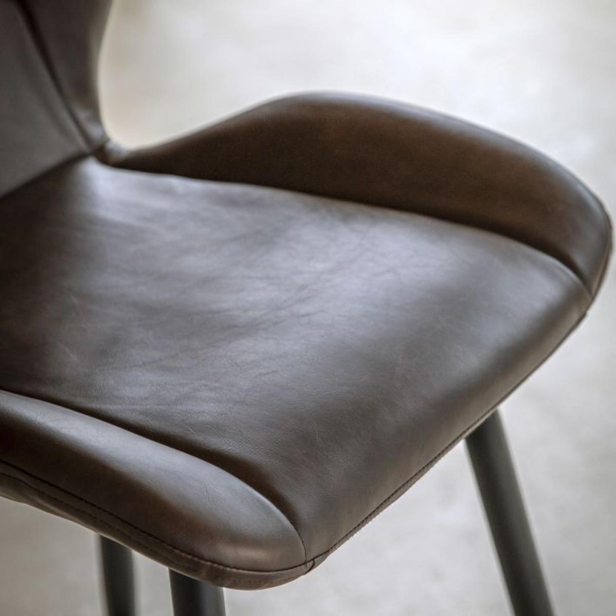 These mid-century inspired modern stools will make a stand out addition to your room. The shaped back and curved seat are upholstered in brown faux leather with extra stitch detailing, paired with metal legs, for a contemporary look. Also available in other colours, and matching chairs available.