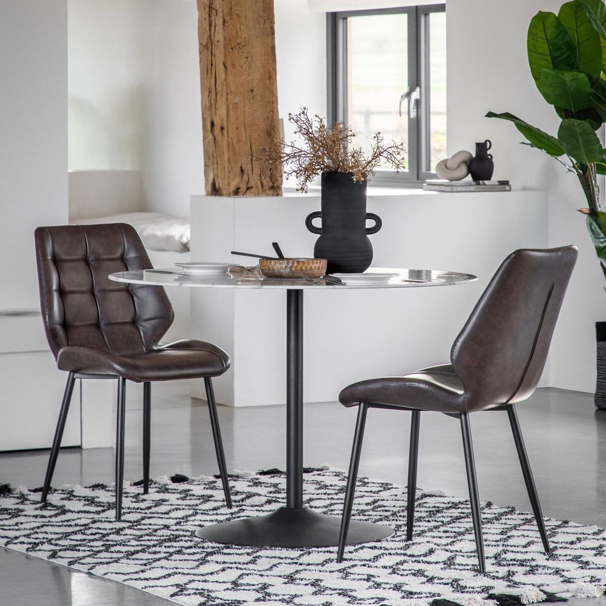 Add a layer of comfort to your dining experience with our Manford set of two chairs. These elegant dining chairs feature a gently curved back and seat, which are reminiscent of mid-century design. The brown fabric is padded and has extra stitching for long-lasting comfort and a relaxing place to sit. The elegant, supportive shape of Manford makes them perfect for a number of dining environments. The elegant chairs' padded seats and slim dimensions make them ideal for usage in boardrooms, dining rooms, or living spaces. Manford will be a striking addition to your dining area or home office, and it suits both modern and traditional homes.