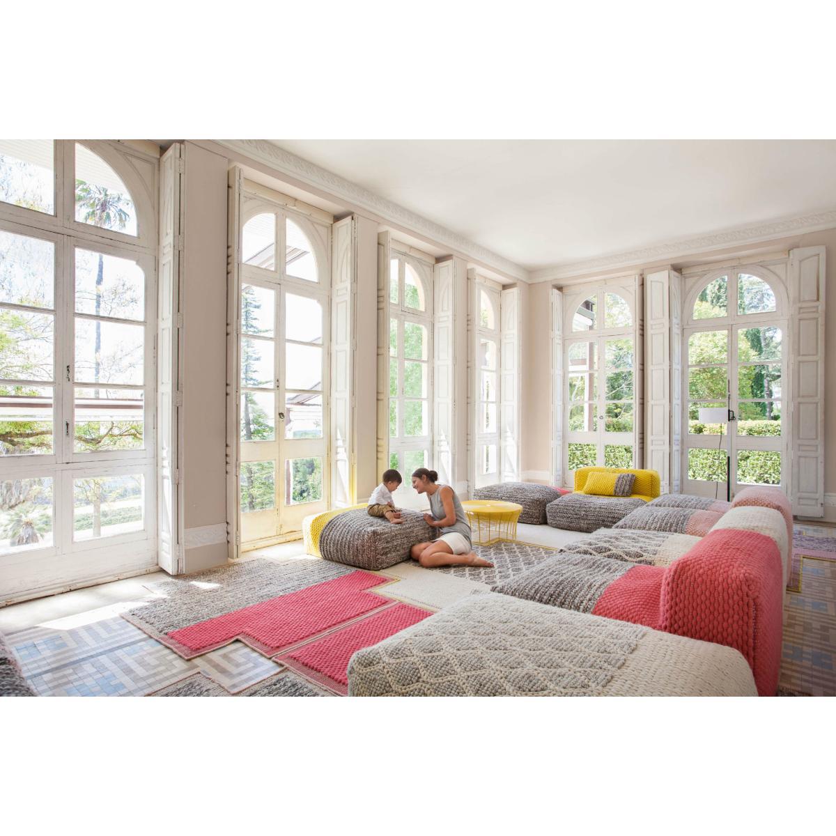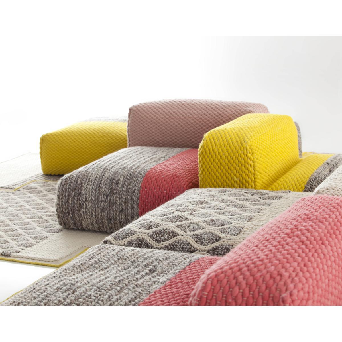 The Plait module, woven by craftsmen with a loom, alias ethnic style, geometric composition and modern design. Plait is created by Patricia Urquiola, full of a multitude of cultural influences. It provides a personal note in your habitat highlighted by a search for balance between folklore, know-how and innovative mix of patterns. Filled rubber foam, Plait offers seating comfort and presents a poetic design. This module 100% virgin wool measurement : L 120 x W 90 cm.