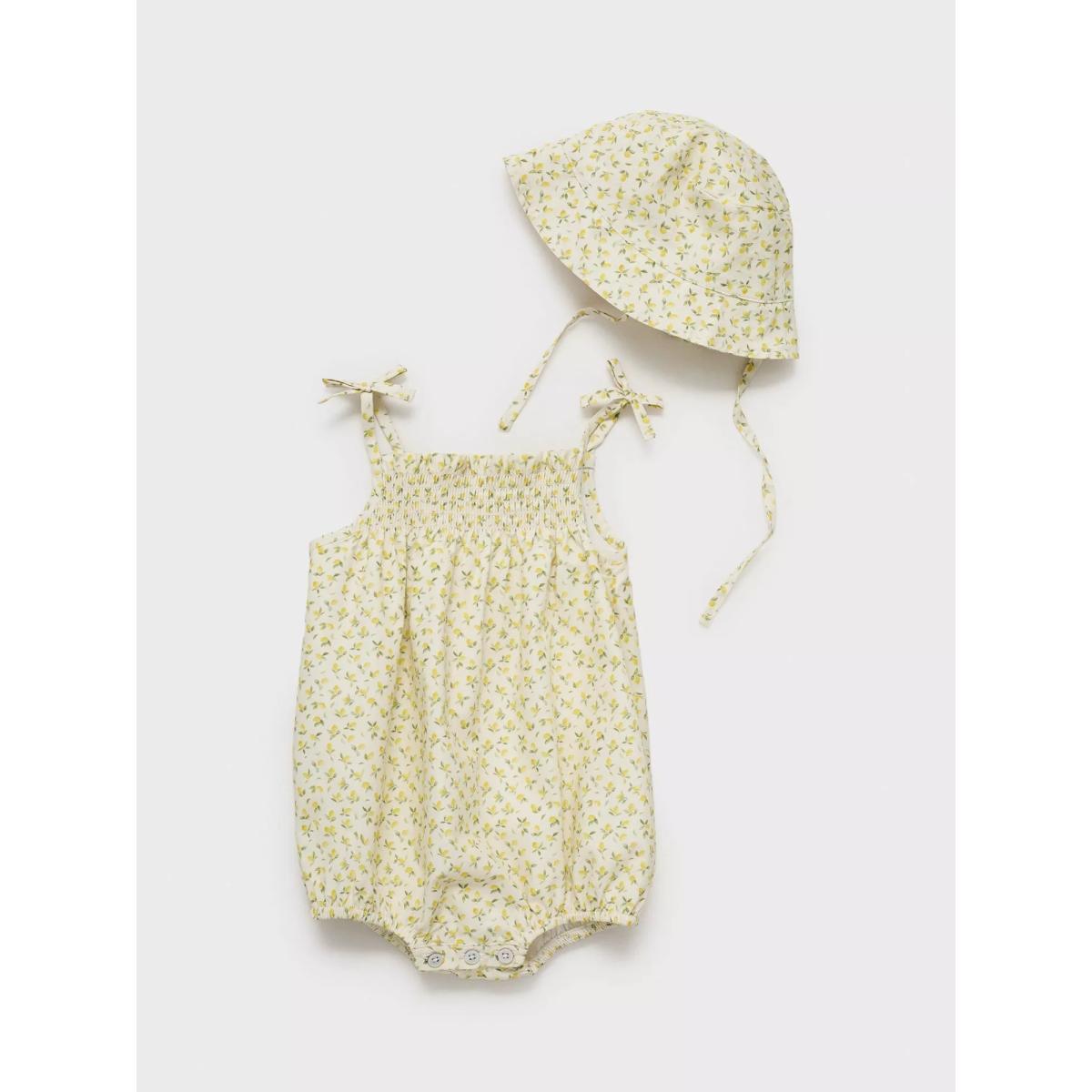 Mango Baby Cotton Ditsy Print Romper, Green