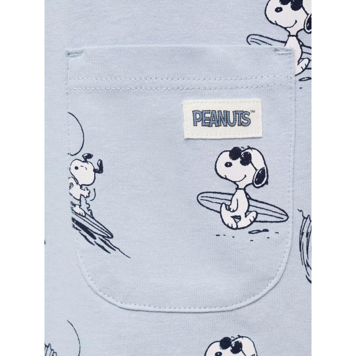Mango Baby Cotton Short Sleeved Snoopy Print Bodysuit, Medium Blue