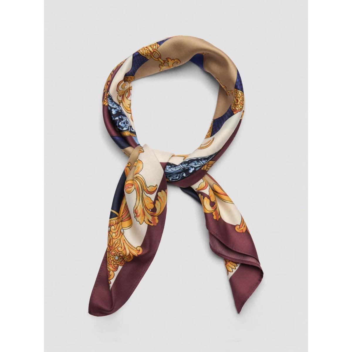 Accenting your ensemble, this satin scarf from Mango comes in a graphic print.