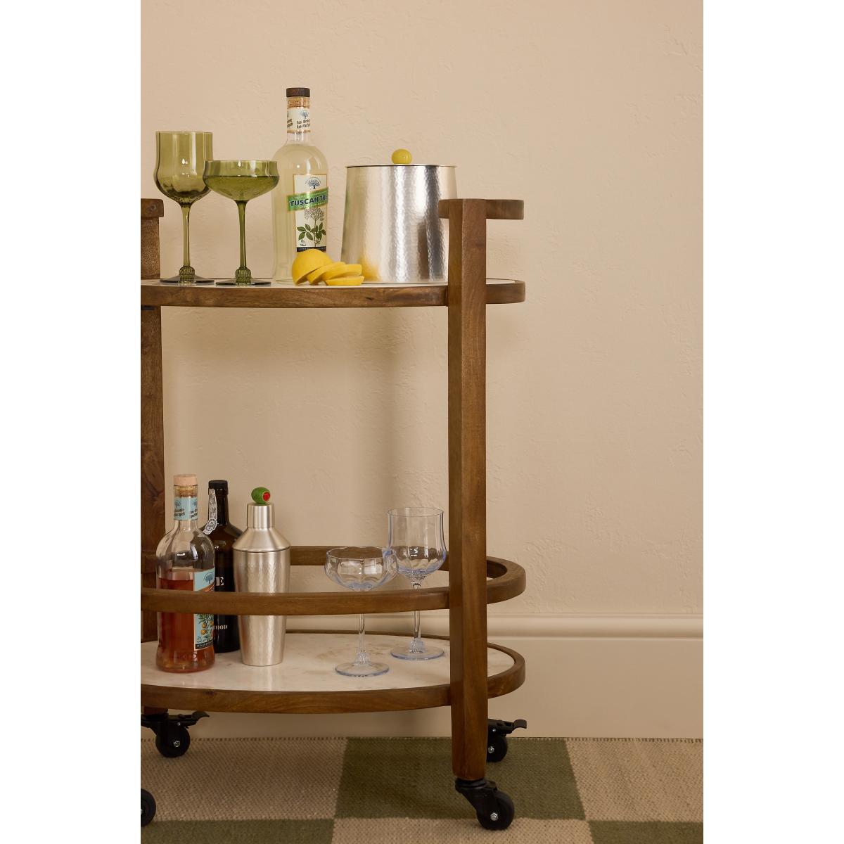 Mango Wood & Marble Bar Cart Drinks Trolley