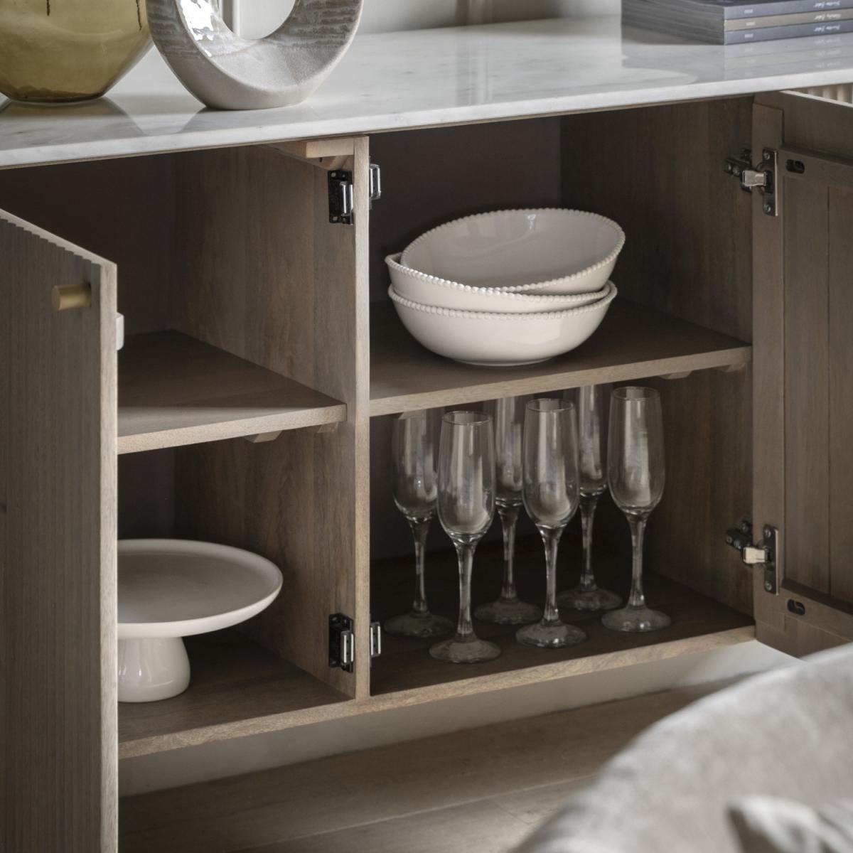 Mango Wood Fluted Sideboard with Marble Top - Marmo