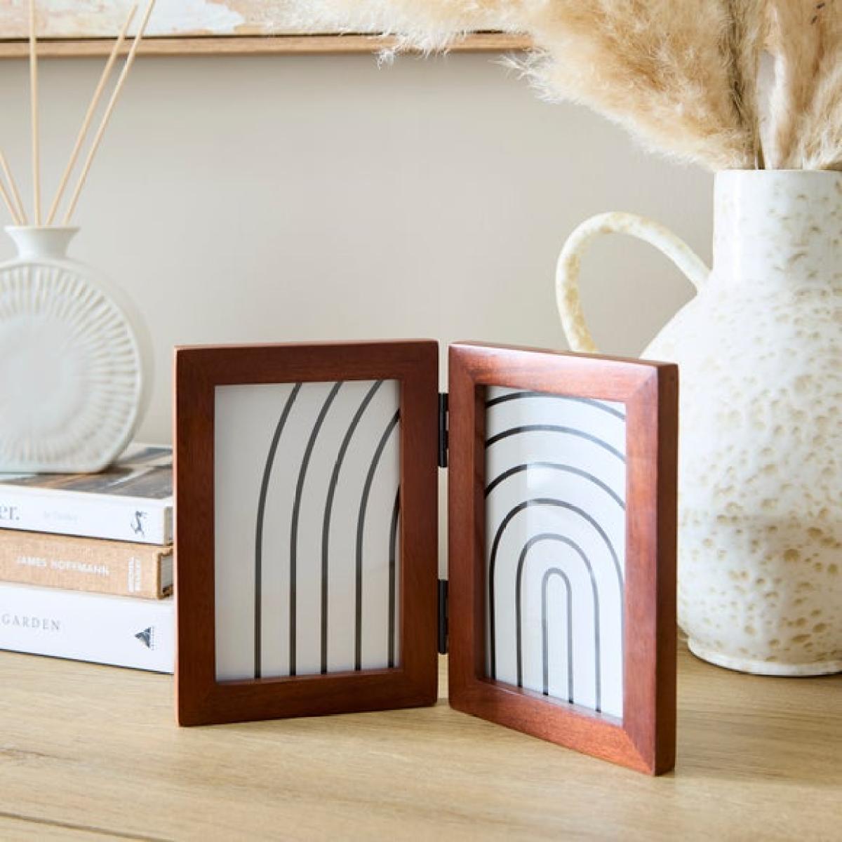 * Double photo frame * Hinged design * Simple mango wood frames * Choice of colours This hinged double photo frame is a stylish way to display two of your favourite moments side by side. Made from mango wood, the simple frames bring a warm, natural feel to your space. The hinged design allows it to stand freely on shelves, desks or bedside tables. Available in a choice of colours to suit a variety of interiors, it's ideal for family photos, travel memories or special occasions. A practical and thoughtful addition to any room.