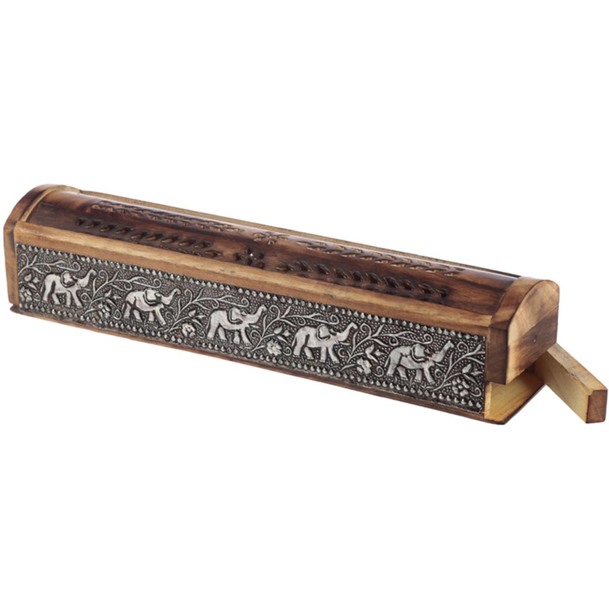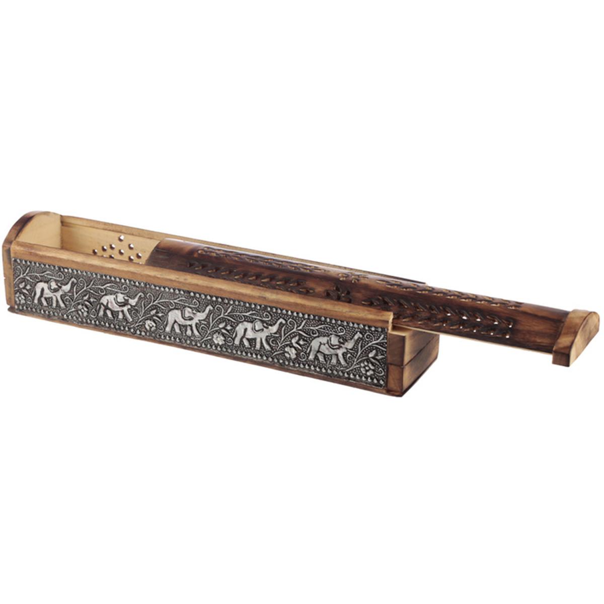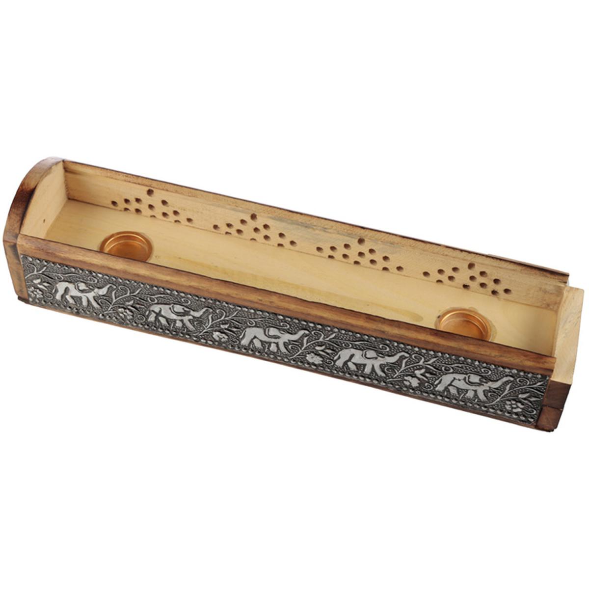 Incense burners are a fantastic item to have in your home whether you use them for burning incense or as a decorative centrepiece. Made from mango wood and metal, incense burners are easy to use. This incense burner is suitable for use with standard incense sticks and cones (not included) and can also be used to store incense when not in use. The natural resins in incense can leave a light residue on the surface of the burner, this can be wiped away with a damp cloth. All incense burners come with instructions and safety information. Never leave unattended when lit and always place on a heatproof surface away from drafts and soft furnishings.