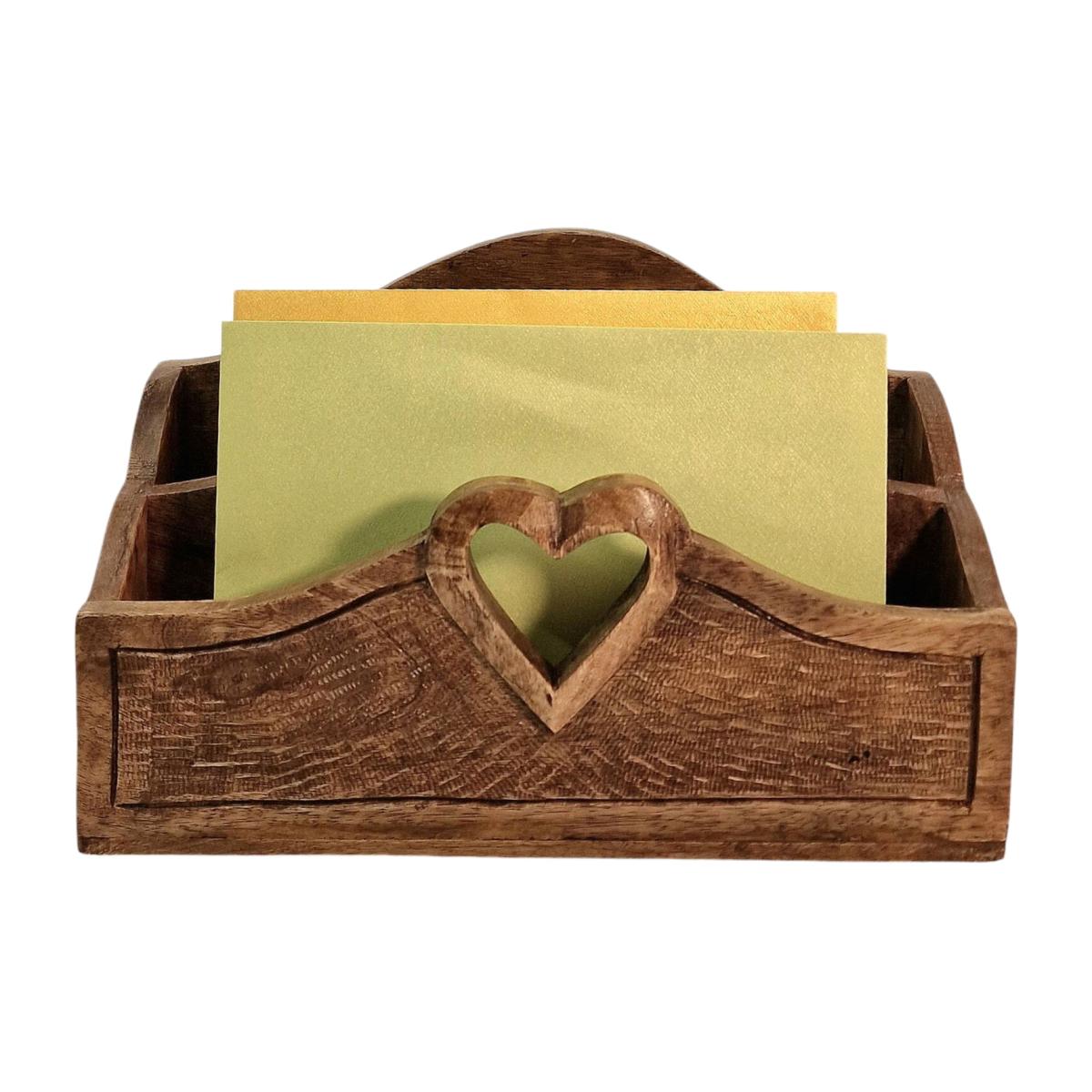 Transform your home into a cosy retreat with our Country Cottage Collection, a beautiful blend of handcrafted mango wood and artisanal ceramic. Each piece in this range is designed to bring warmth, charm, and rustic elegance to any space, celebrating the beauty of natural materials and craftsmanship. Mango Wood Base Sourced sustainably, the rich grain and natural variations in the mango wood,create a warm and earthy foundation, offering both durability and a unique character to every item. A gorgeous, solid mango wood letter rack with heart design.