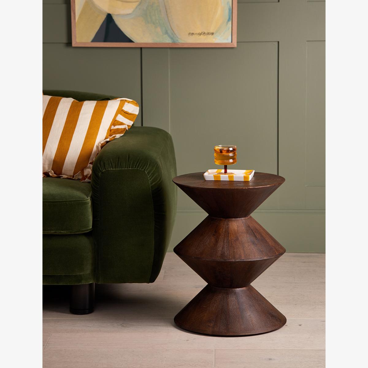 Our Mango Wood Zig-Zag Side Table embodies contemporary design, making a piece of furniture that doubles up as art. This statement piece is made from sustainable mango wood and hand-carved into a beautiful side table that will enhance any corner of your home. The zig-zag body makes a statement that will stand out in any setting, from your living room to the bedroom. Perfect for mid-century modern interior lovers.