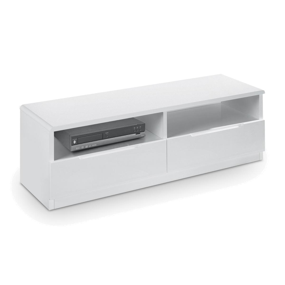 The Manhattan Media Unit is presented in a stunning white high gloss lacquer for a clean, contemporary image that fits beautifully in any living space. It comprises a large split shelf that provides ample space for set-top boxes and DVDs, plus two well-sized drawers providing ideal storage for DVDs and remote controls. Accompanies Julian Bowen's extensive Manhattan collection of Bedroom and Occasional furniture.