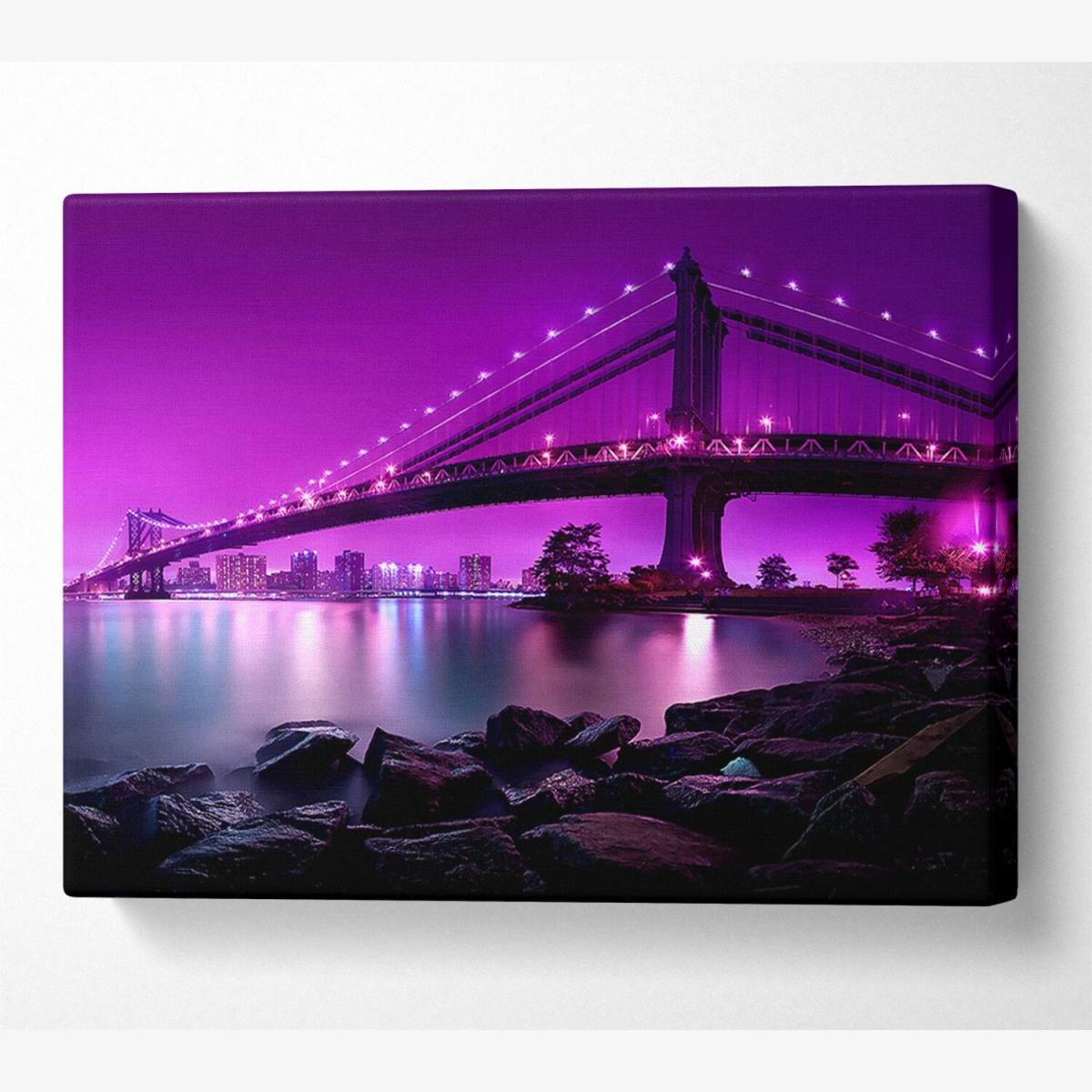 Manhattan Bridge New York City Canvas Print Wall Art - Yellow / 101.6cm