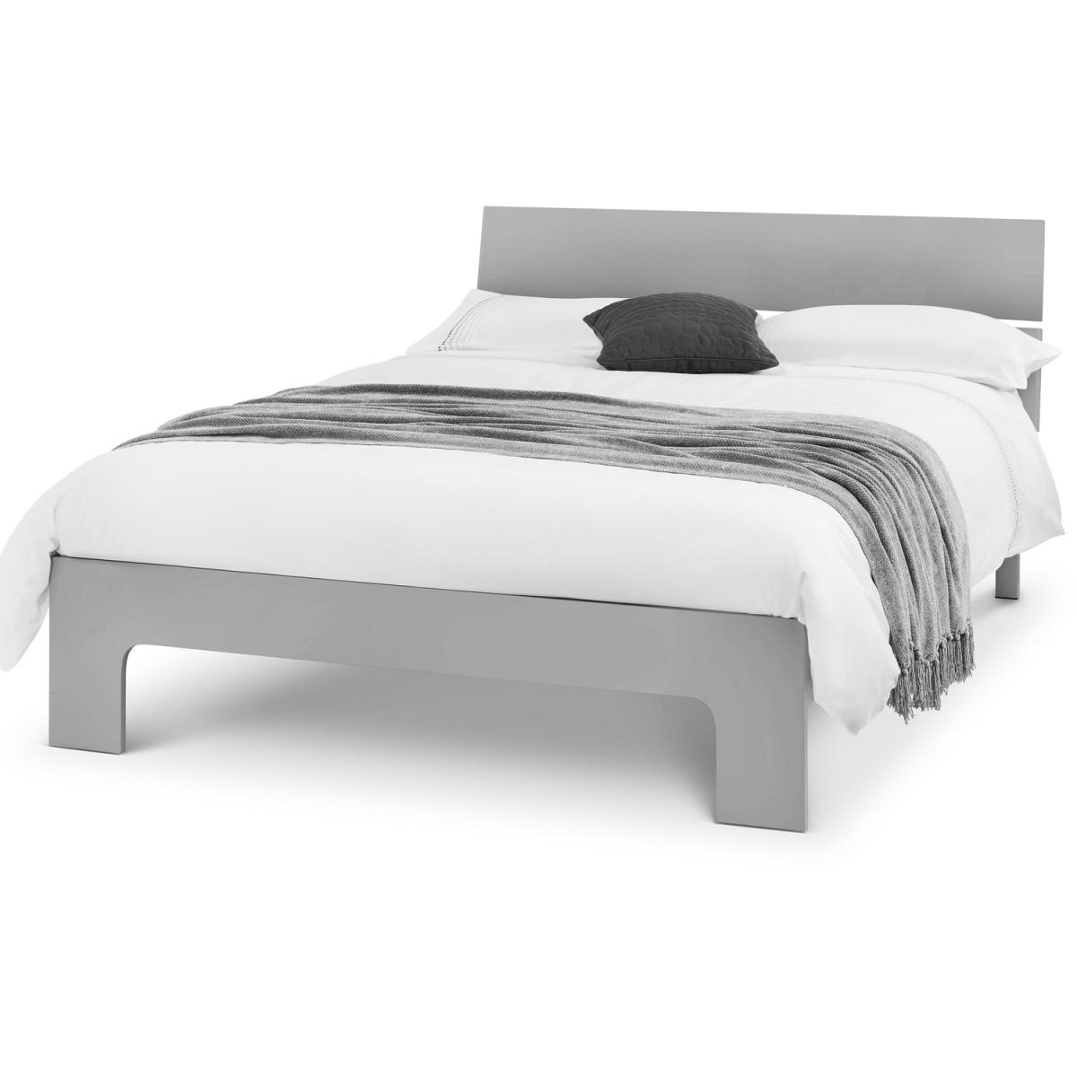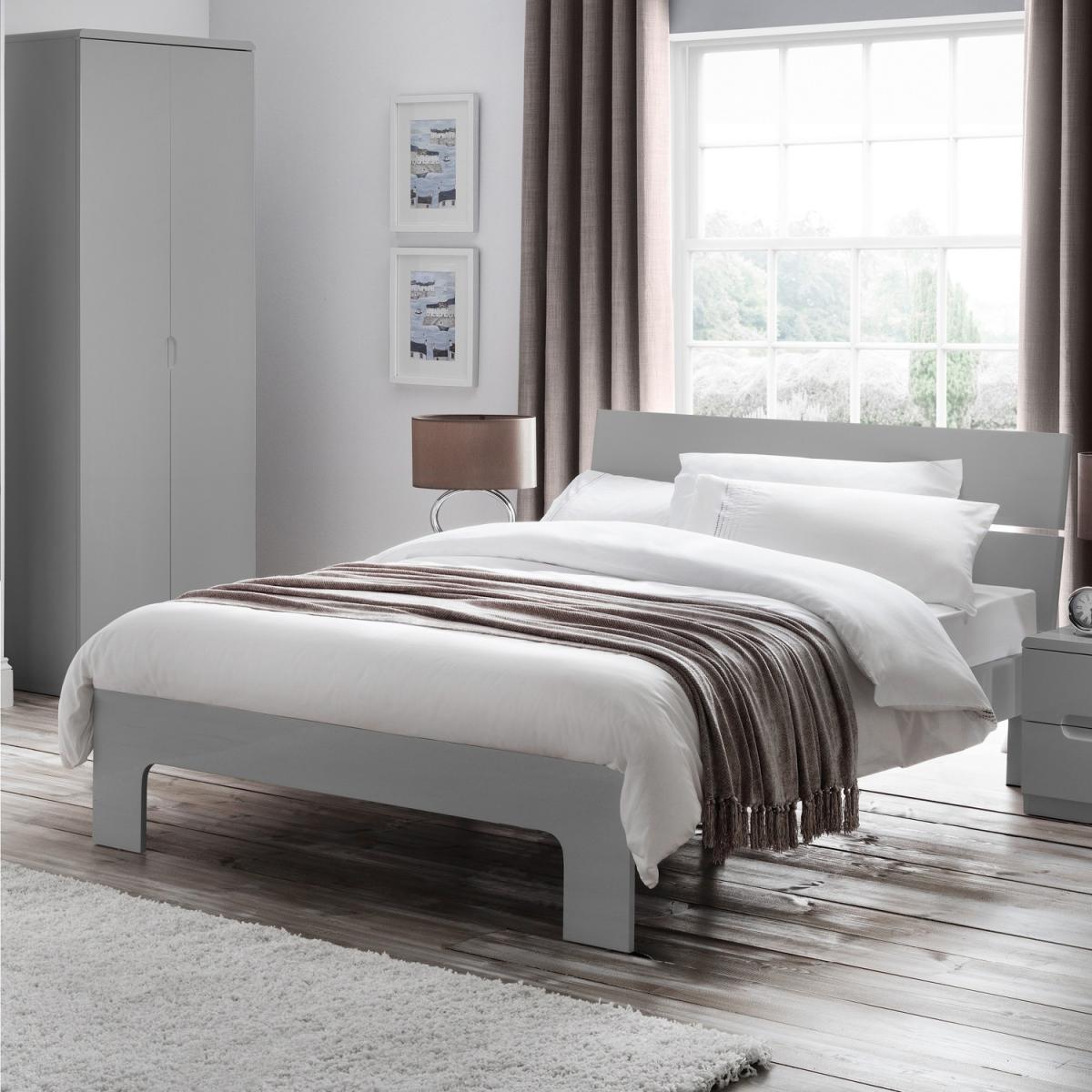 I’m a fan of this gloss grey double bed for its clean lines and subtle sheen - perfect if you’re aiming for a modern or Scandinavian-inspired scheme. The low profile and slatted headboard keep the look pared-back, while the reflective finish helps bounce light around a smaller room. For styling, stick to a neutral base of pale linens and add texture with a chunky knit throw or velvet cushions in muted tones. Slim, metal-framed bedside tables and a pair of wall-mounted lamps will maintain the streamlined feel. If you need extra storage, tuck shallow boxes under the bed to keep clutter out of sight.