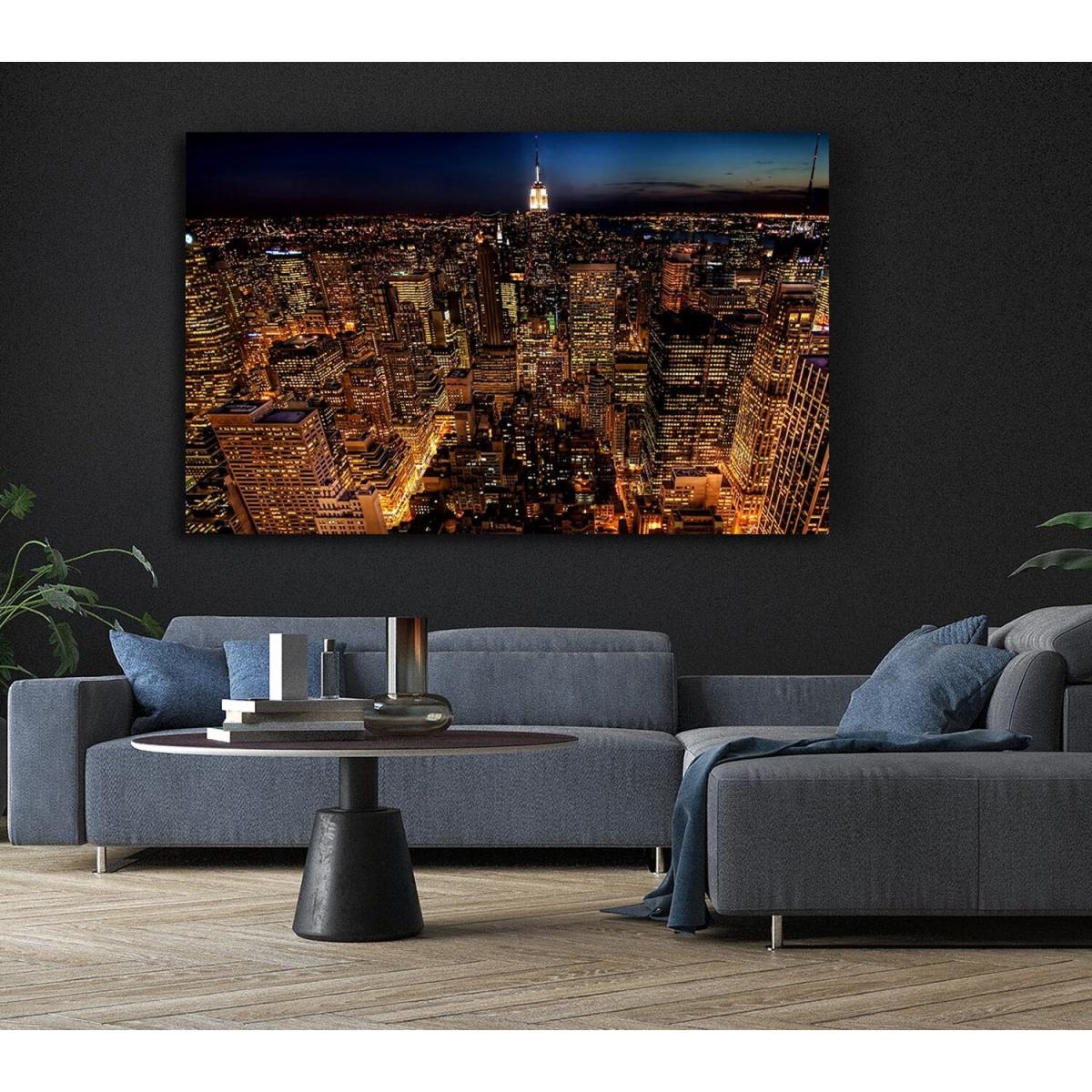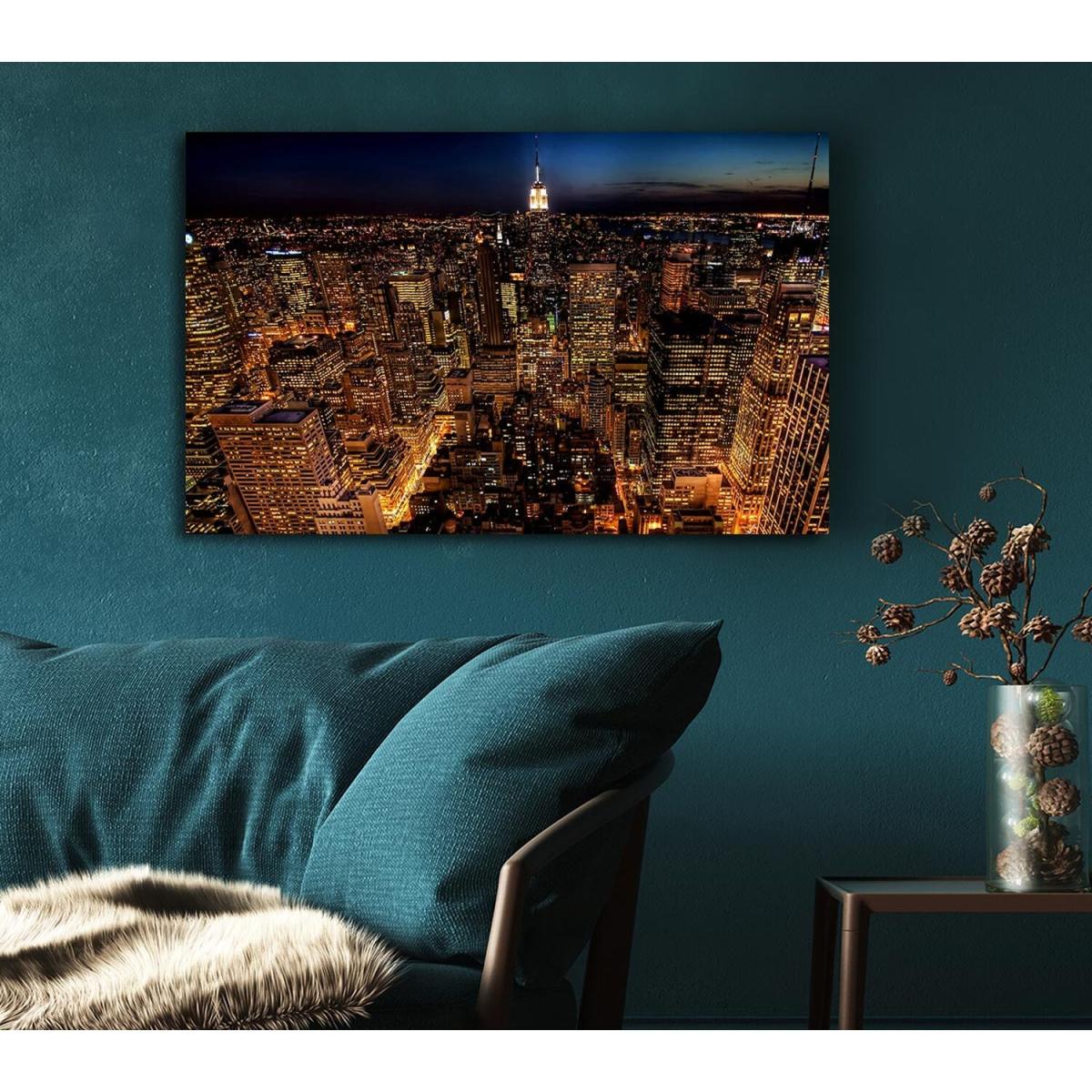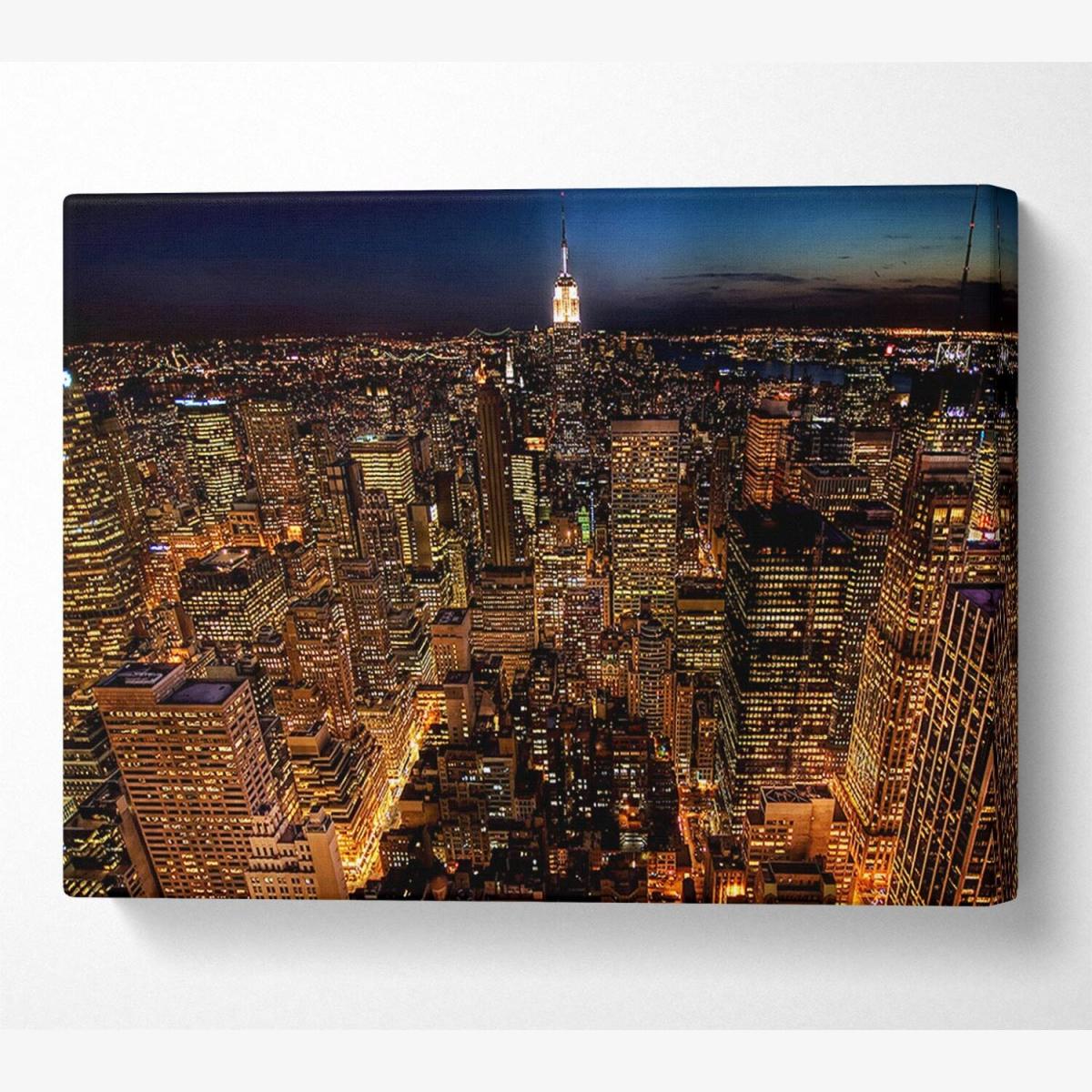 Manhattan Night Life Glow Canvas Print Wall Art - Yellow / 81.28cm