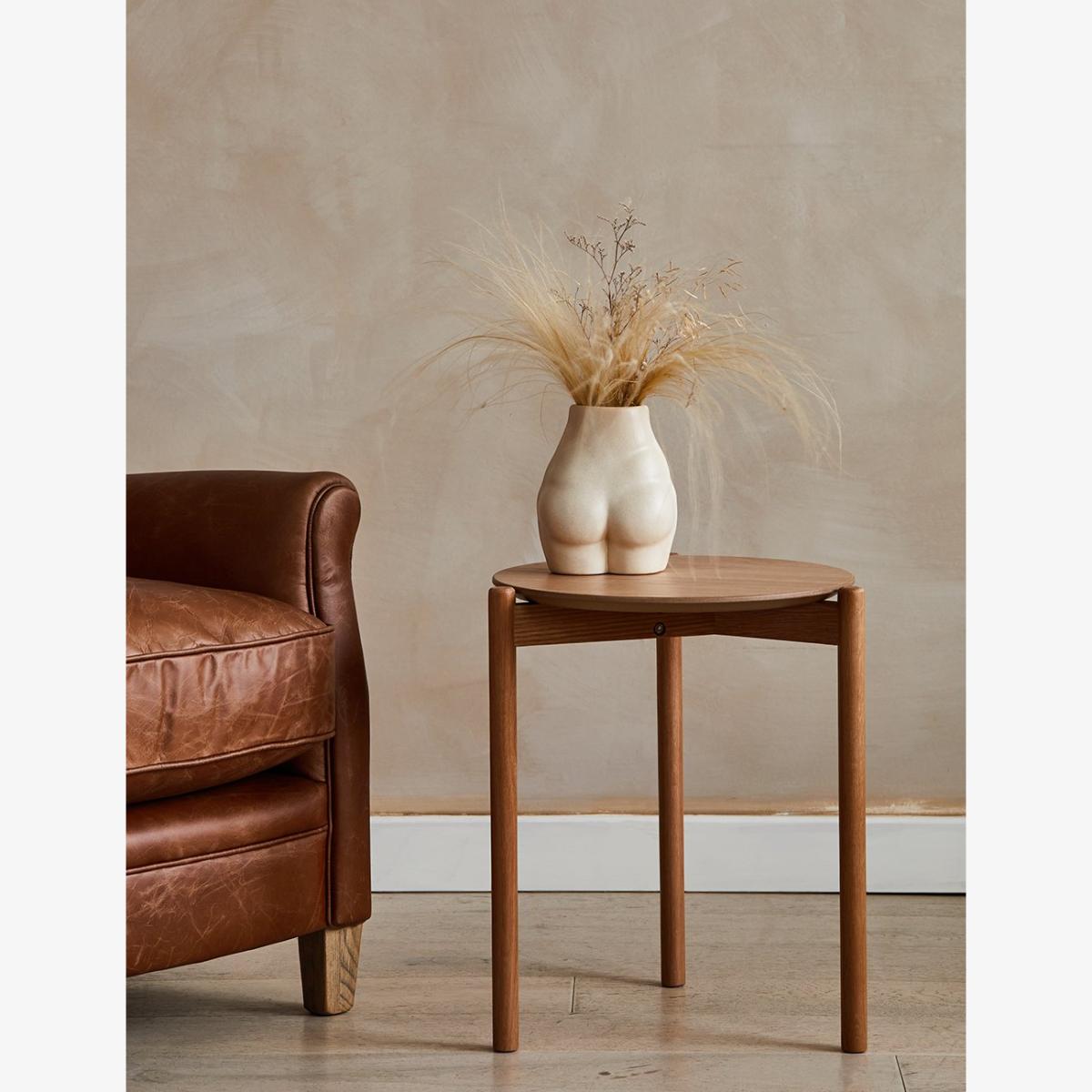 This simple yet stylish side table would look at home combined with any décor, thanks to it's classic silhouette and minimal design. We love the round top and simple three legs with a rounded edge for an elegant, timeless piece of furniture. Also available in walnut and black.