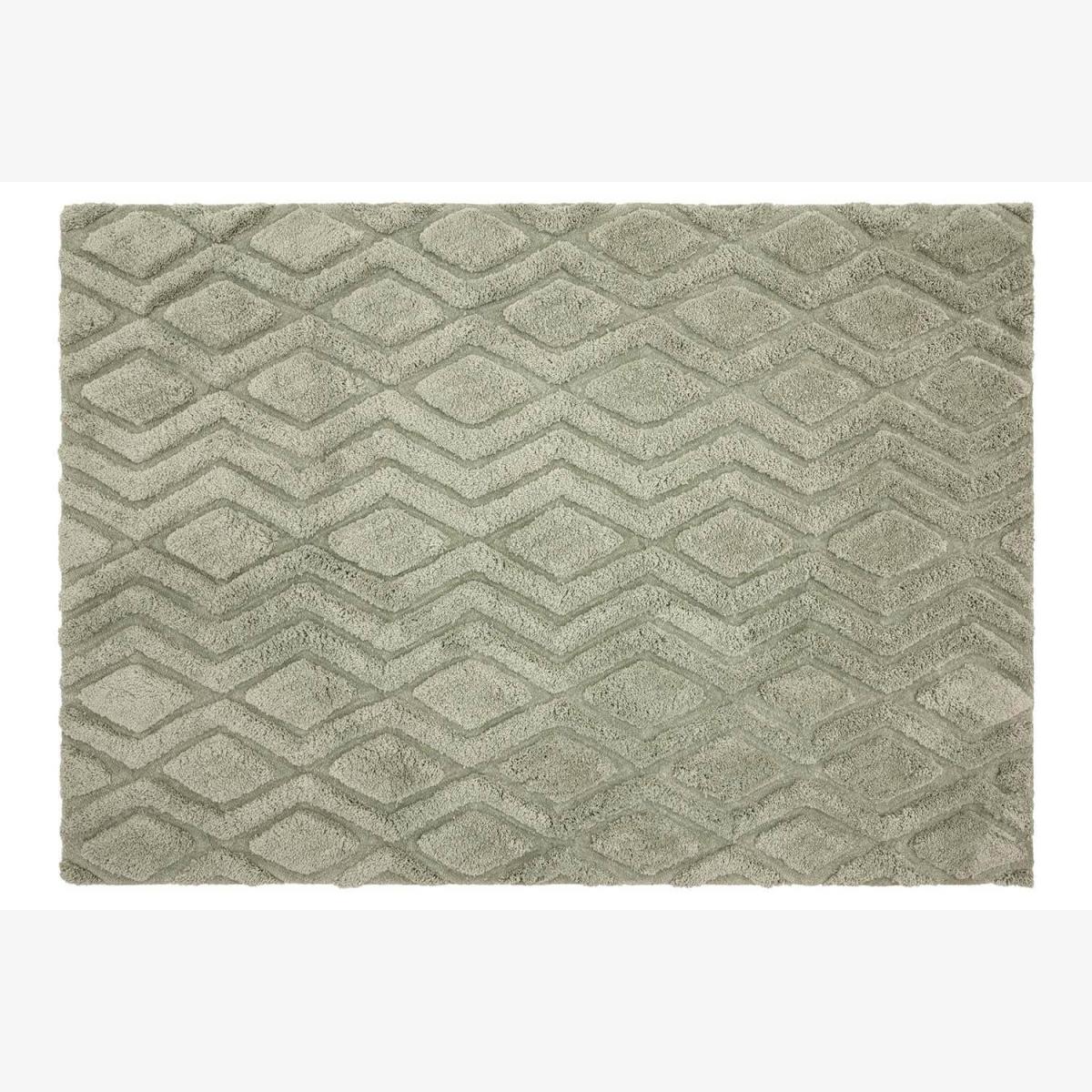 I love this small rug in sage because of its versatile tone and subtle geometric pattern, which adds interest without overpowering a space. It works well in both modern and traditional interiors, providing a fresh, calming touch especially in neutral colour schemes. Practical styling tips include using it under a coffee table in a living room to anchor seating areas or layering it with larger rugs for added texture. Its compact size makes it ideal for smaller spaces or as a accent piece, and pairing it with natural fibres or minimalist furniture can really let the pattern and colour shine.