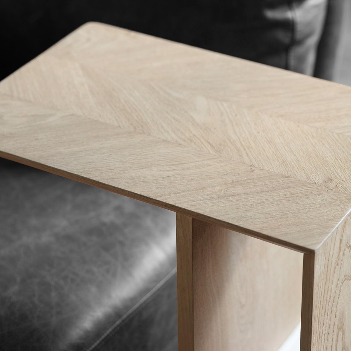 The stunning Manila 1 Drawer Side Table features a beautiful inlay chevron design, and is made using European oak and rustic oak structured veneers which show the natural beauty of the oak grain and knots. Finished in a specialist mat lacquer, which keeps the timber looking natural and dry, with brushed out grain, the table is tactile to touch and looks amazing.