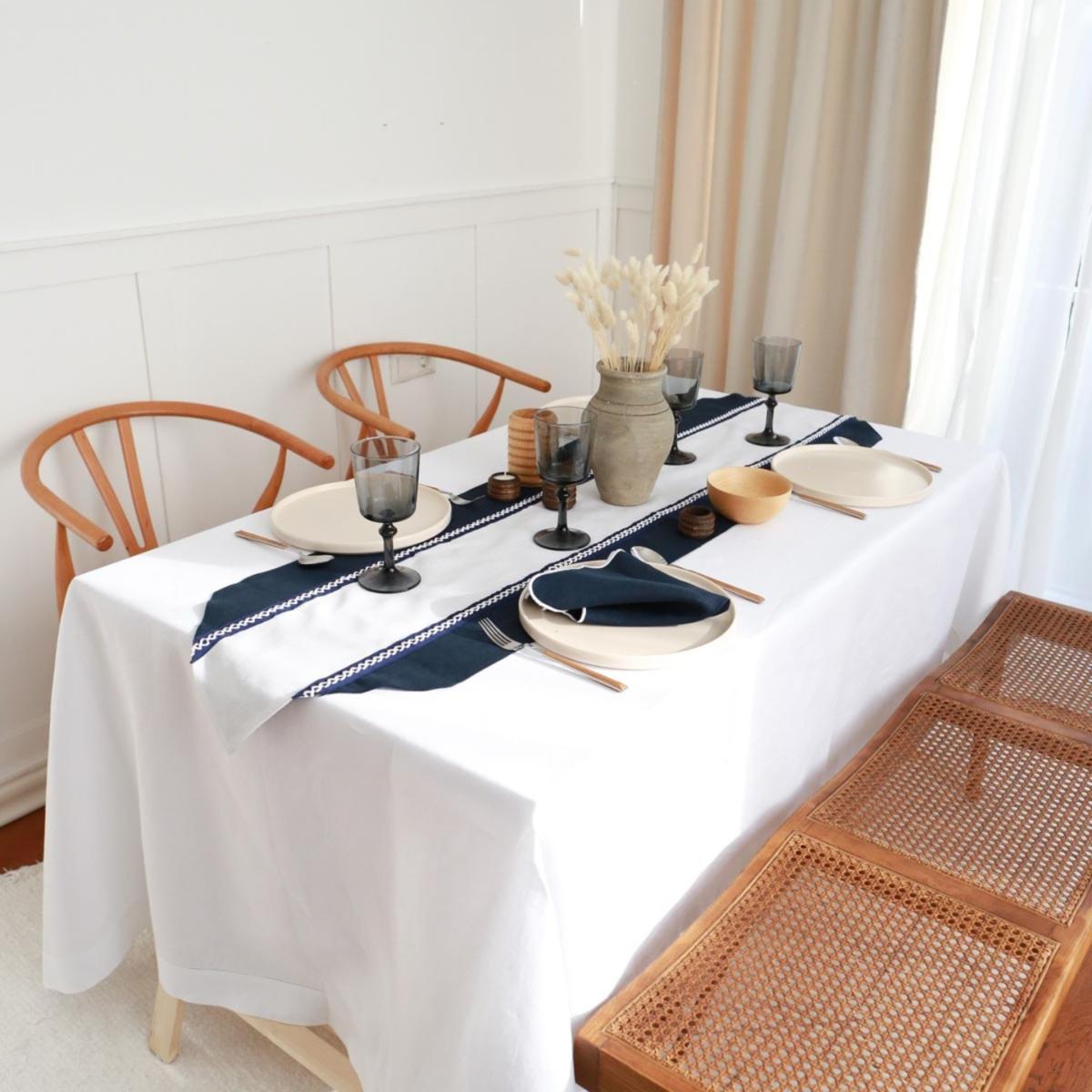 Manila - Navy & White Colored Linen Runner | Km Home Collection
