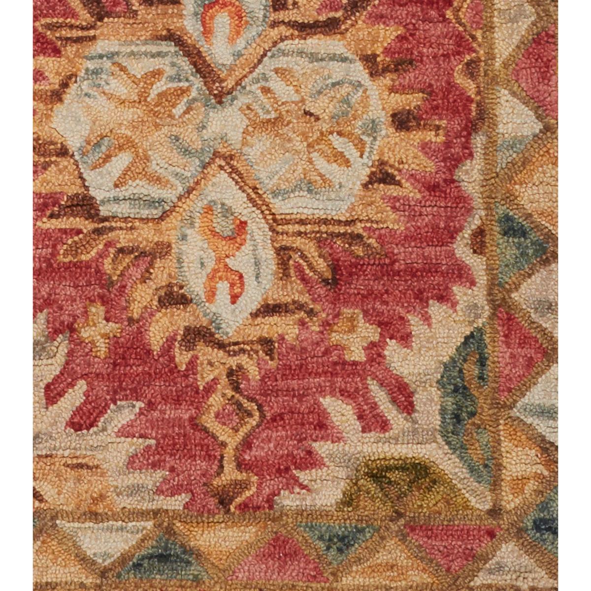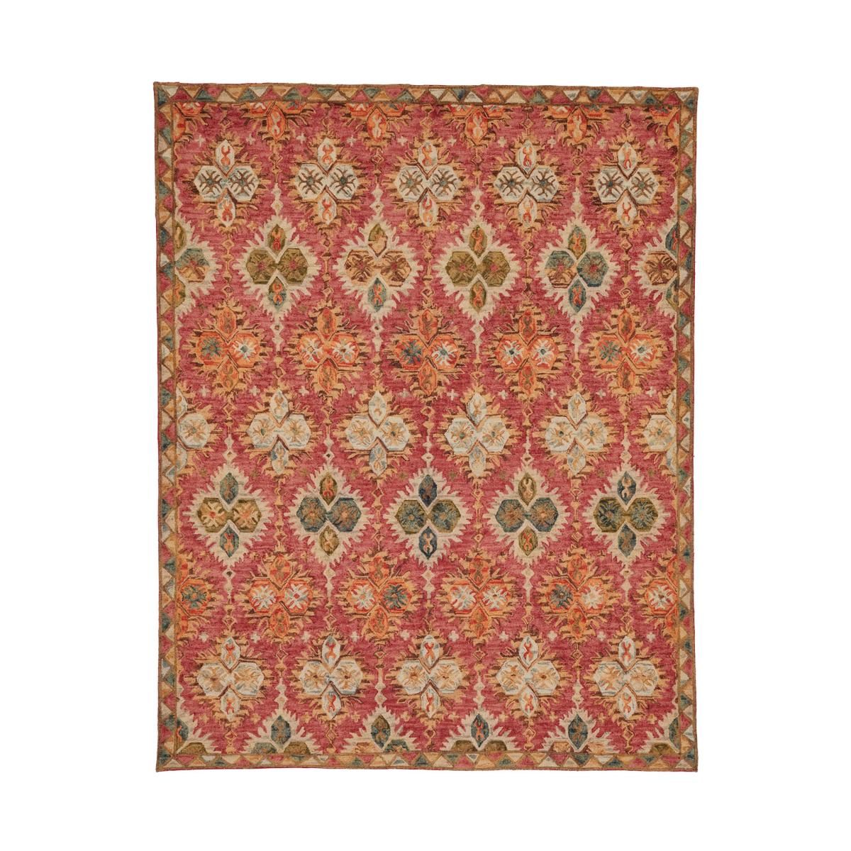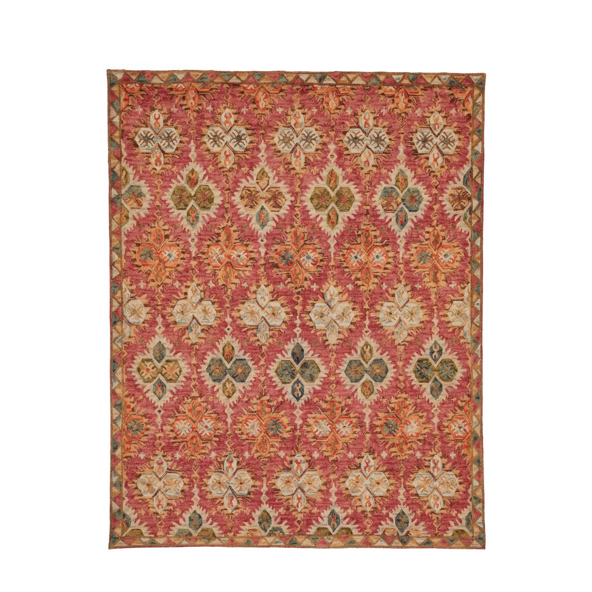 A large hand-tufted rug made from 100% wool with 100% cotton backing, with a stunning geometric floral design and a colourful border of triangles. The wool used to make our Manisa Rug is vegetable dyed and treated with a herbal wash before being left to dry naturally in the sun, creating a beautiful, antique finish. With its muted autumnal colour palette, the Manisa Rug will add warmth to any room, in more ways than one. Available in several sizes, with this one being the larger.