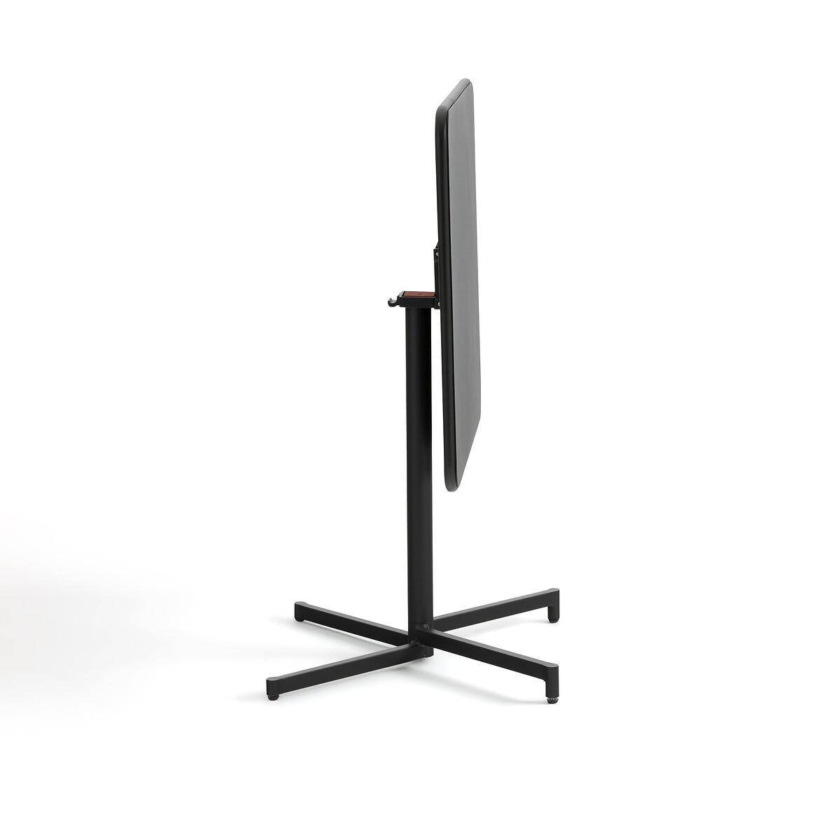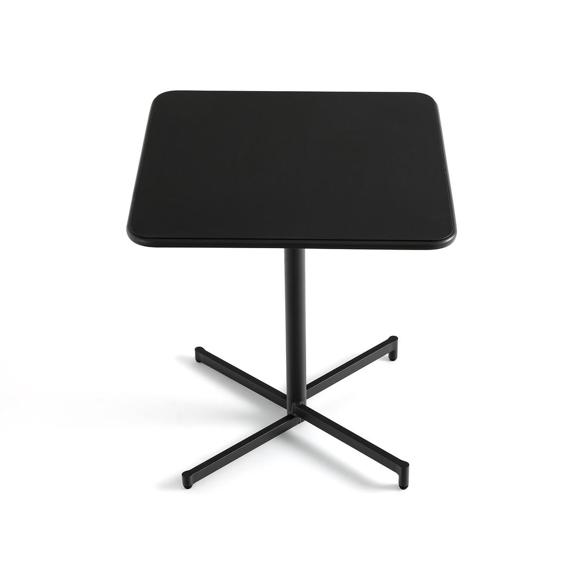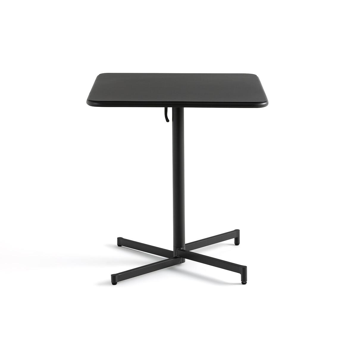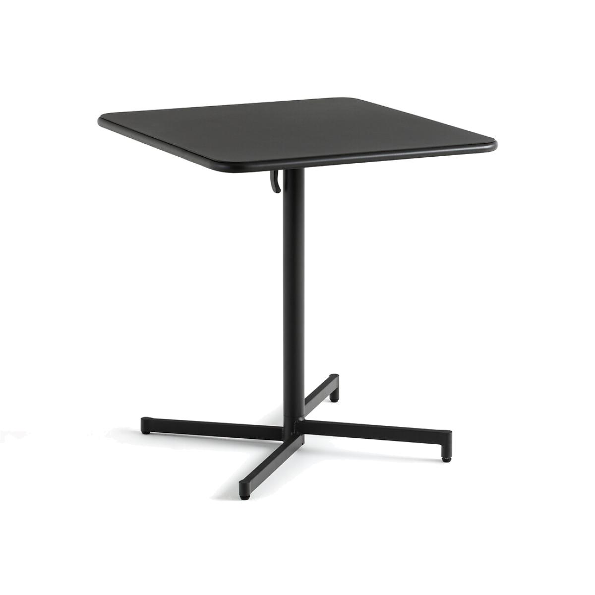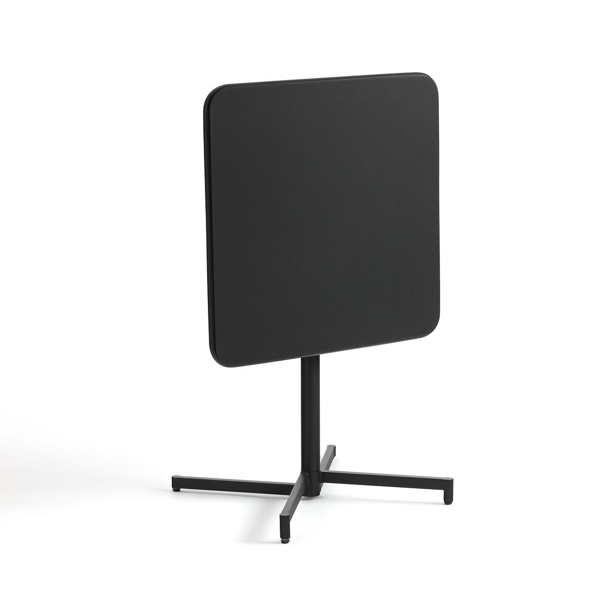 The Manni garden table brings an updated take on the style of classic Parisian bistro tables. Elegant with its matte finish, light because it is made of aluminium and prcatical with its folding top for easy storage... It is ideal for large and small spaces, especially on a balcony. Product Details • In anthracite grey-tinted aluminium with epoxy finish • Folding tray using a handle • 4 plastic pads adjustable in height • Aluminium has the advantage of not rusting and is also very resistant to abrasion. Easy to clean, it can be washed with soapy water. This material is ideal for outdoor furniture. • Assembly required. Dimensions • Overall height: L70 x D70 x H74cm • Table top thickness: 2.5cm • Central base diameter: 5cm • Width of each foot: 35cm • Total width of base support feet: 74cm • Weight: 9kg Parcel dimensions and weight • 1 parcel • L78.5 x D75 x H14cm. 11kg.