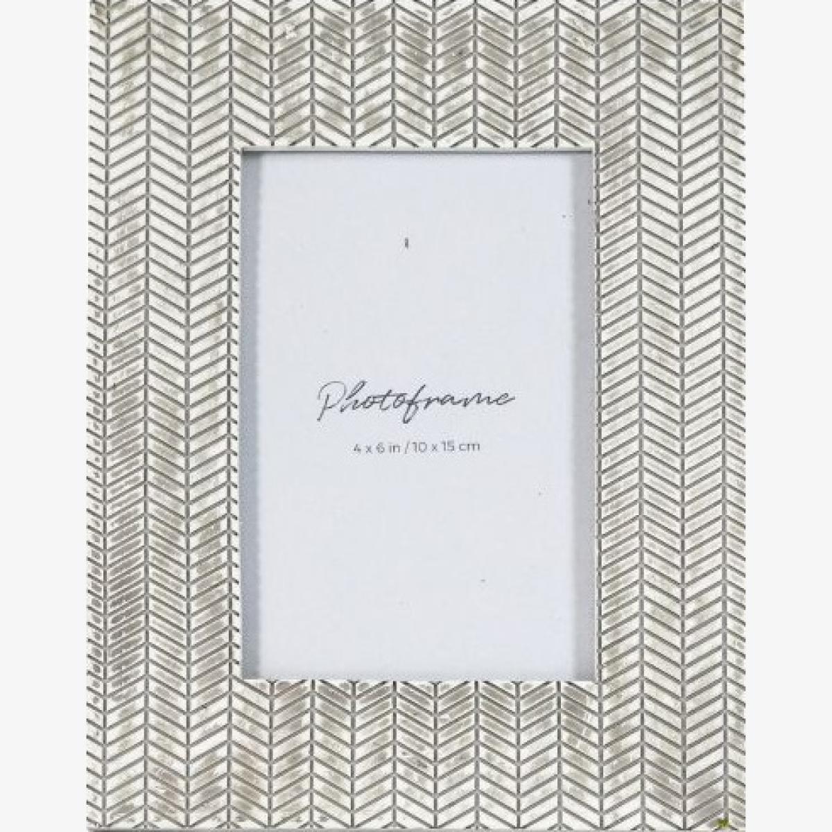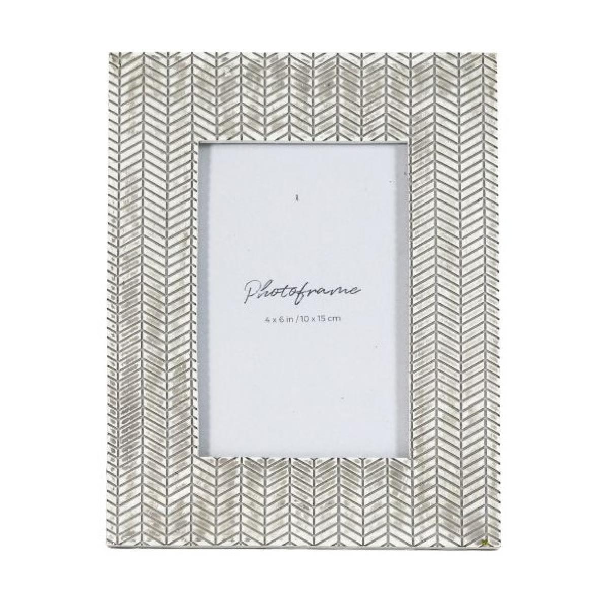 This contemporary photo frame is a fantastic option for showcasing your 4" x 6" or 5" x 7" photos. The resin frame features a stunning herringbone pattern in stone grey effect. Colour - Distressed Grey Material - Polyresin/Glass Dimensions -  4" x 6" - H 22 x W 17 x D 1.2cm 5" x 7" - H 24.5 x W 19.5 x D 1.2cm