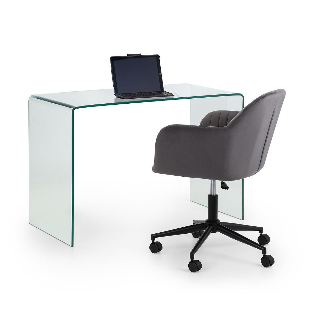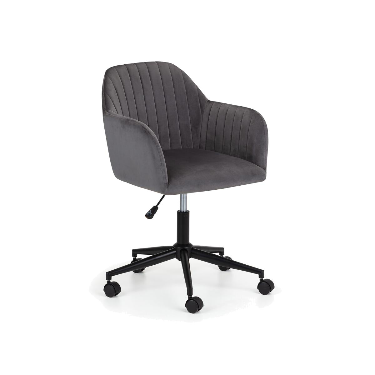 Art deco designed and finished in soft velvet, the Manolo is perfect for adding a bit of luxury to the office. A foam filled seat with a curved backrest creates a comfy spot to sit whilst working, and the height adjustable gas lift mechanism and wheeled swivel base provides practicality. Product details • Soft velvet upholstery with channel stitch detail • Five arm frame with with castor wheels • Adjustable seat height • Swivel functionality • Foam fillings • Medium/firm comfort • Solid back • Assembly required (recommended 2 people) • Fixings supplied • 12 month manufacturers warranty. Product Composition - 90% Velvet & 10% Metal. Product Dimensions - 62 cm x 56.5 cm x 96 cm , Weight - 7.5 KGPackage Dimensions - 70 cm x 68 cm x 48 cm, Weight 10.5 kg. Please note: this product cannot be be delivered to all Offshore Islands Northern Ireland or Republic of Ireland. This product will be dispatched by one of our trusted suppliers. You’ll be contacted by their selected courier about your delivery.