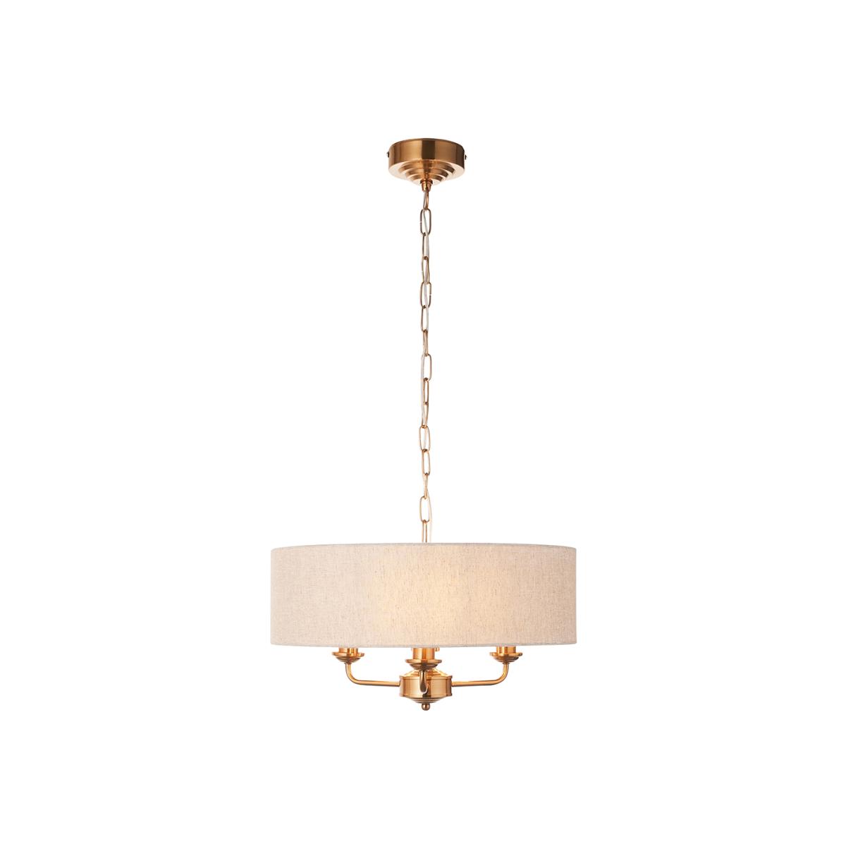 Manon 3-Light Pendant in Vintage Brass & Natural Linen