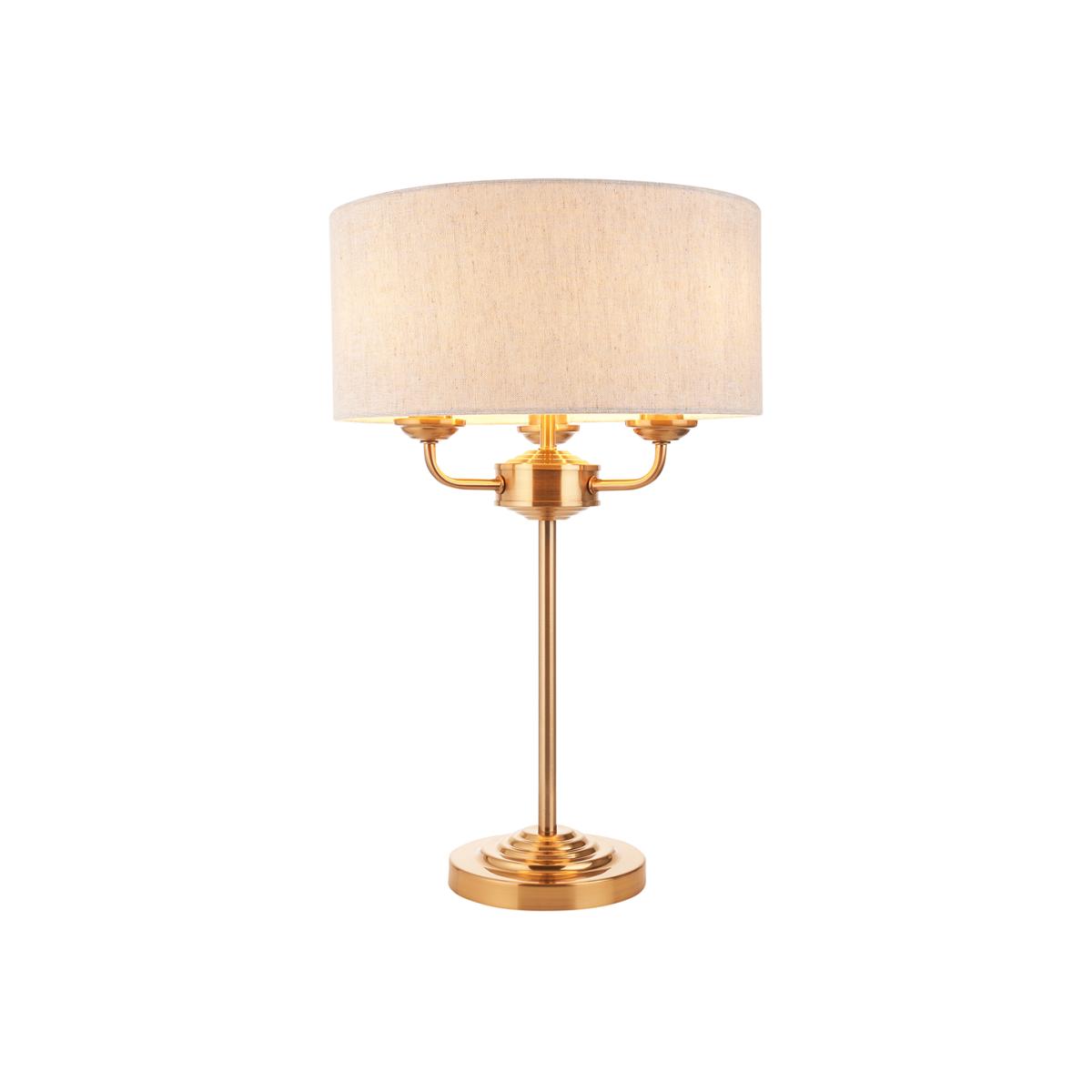 Manon 3-Light Table Lamp in Vintage Brass & Natural Linen