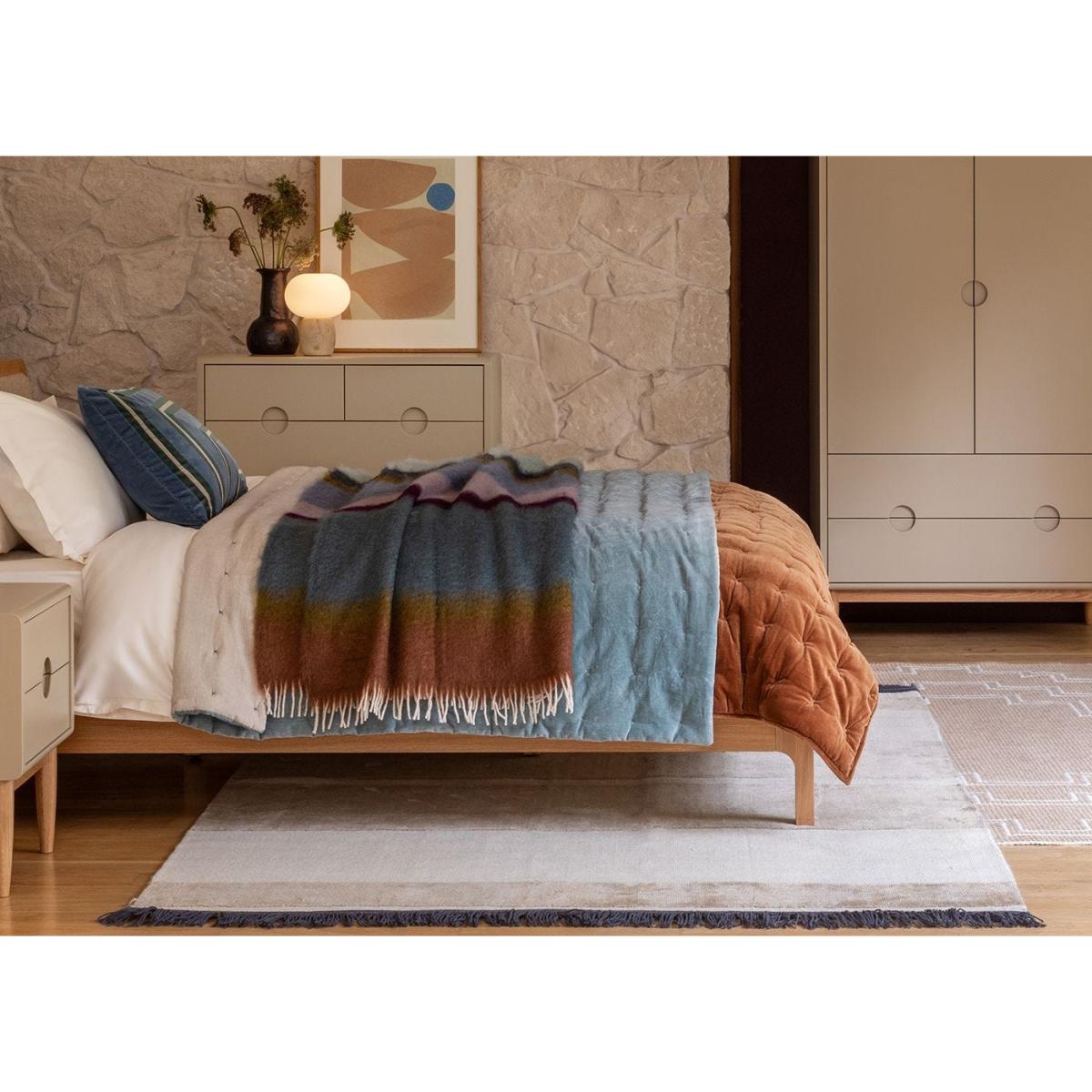 I love the Mantas Ezcaray Mohair Stripe Throw in Matisse Ocean for its luxurious texture and versatile colour palette. Its mohair blend gives it a soft, lustrous finish that works beautifully layered over sofas or draped across the foot of a bed to add warmth without bulk. The ocean blue and mustard stripes make it ideal for contemporary or coastal-inspired interiors, where they can introduce subtle colour without overwhelming the space. For styling, try pairing it with neutral sofa tones or crisp linen bedding to elevate a relaxed, elegant look. It’s both practical - because it’s beautifully crafted and durable - and stylish, making it a great addition for any scheme that values a touch of understated luxury.