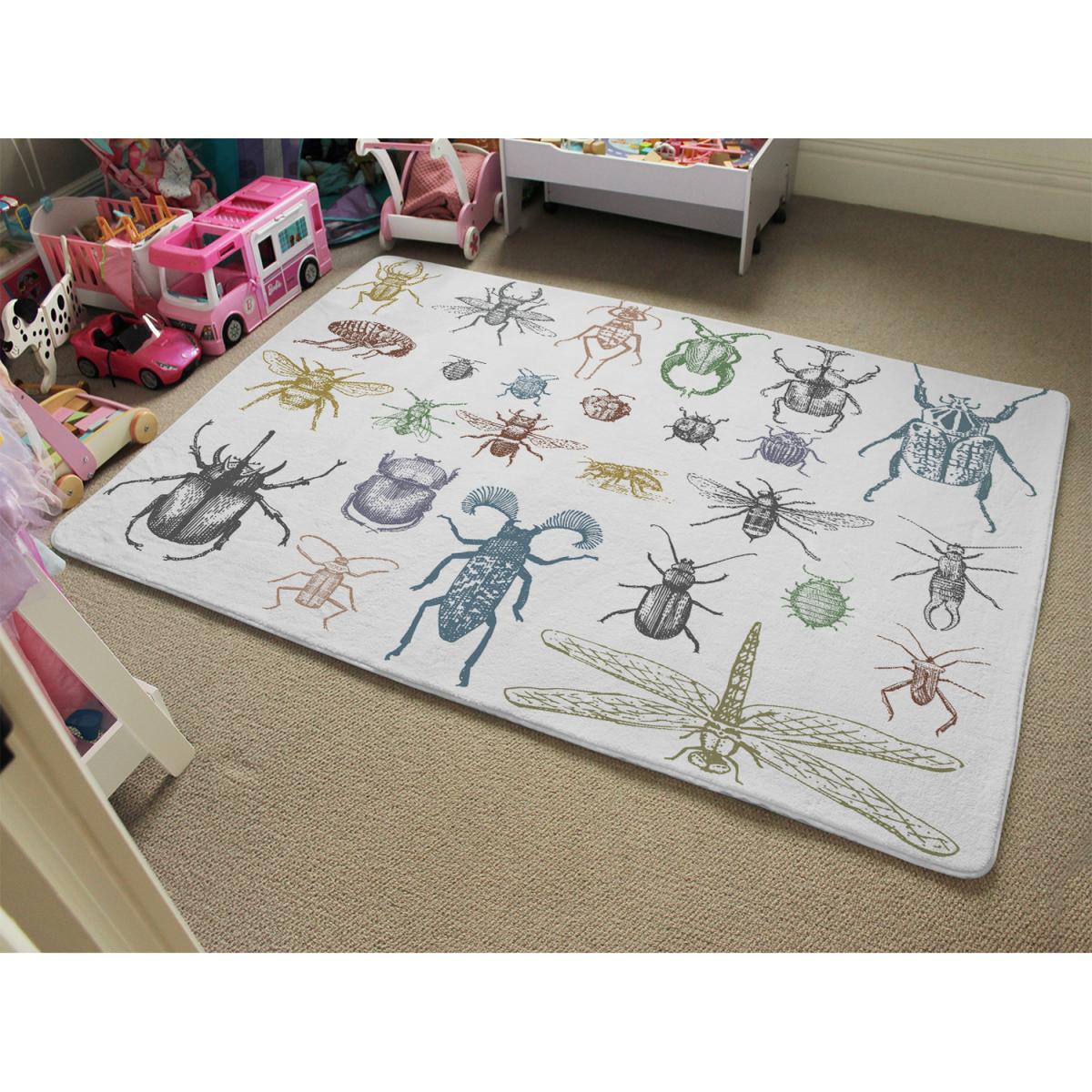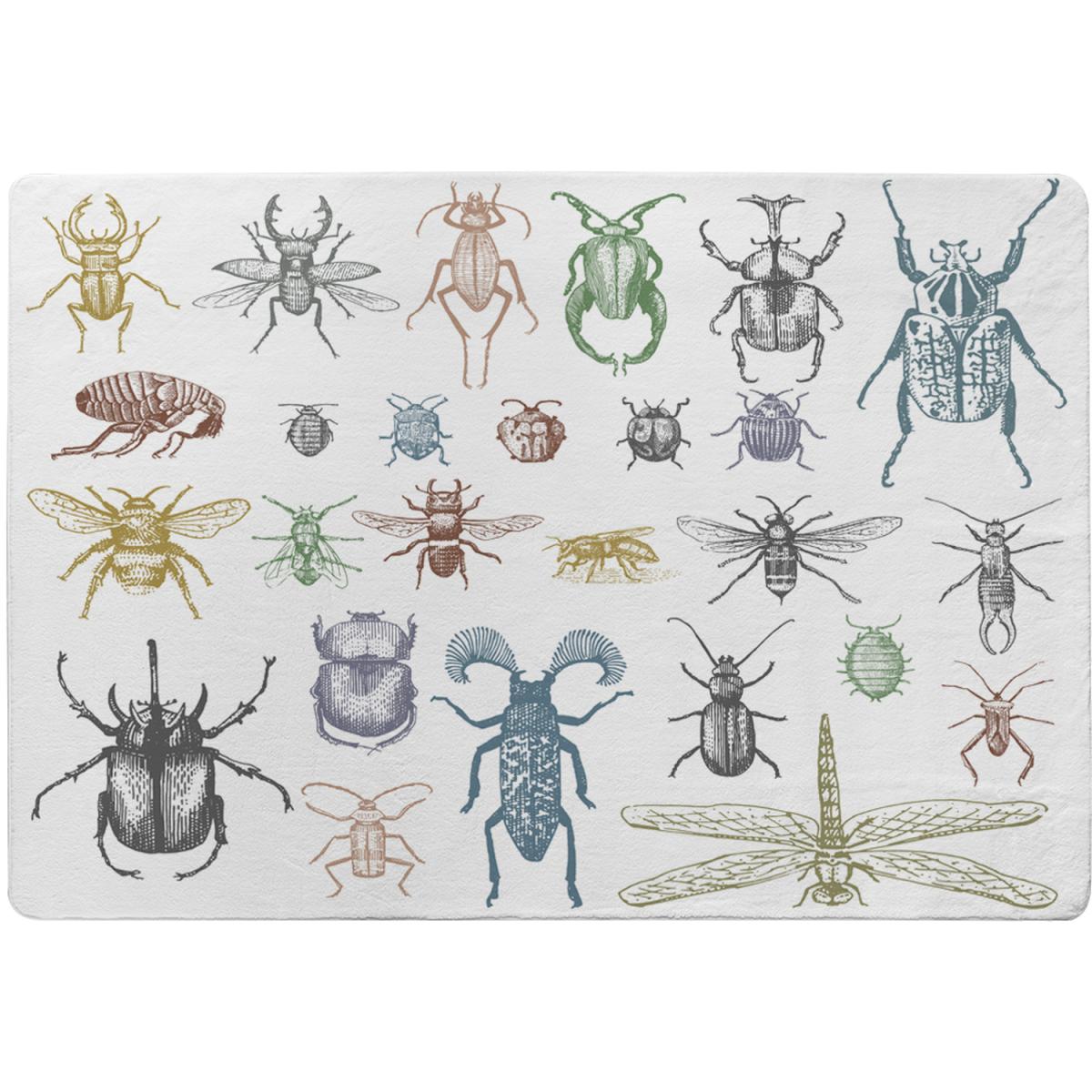 Many Species In Vintage Old Hand Drawn Style Designer Rug - White / 110cm