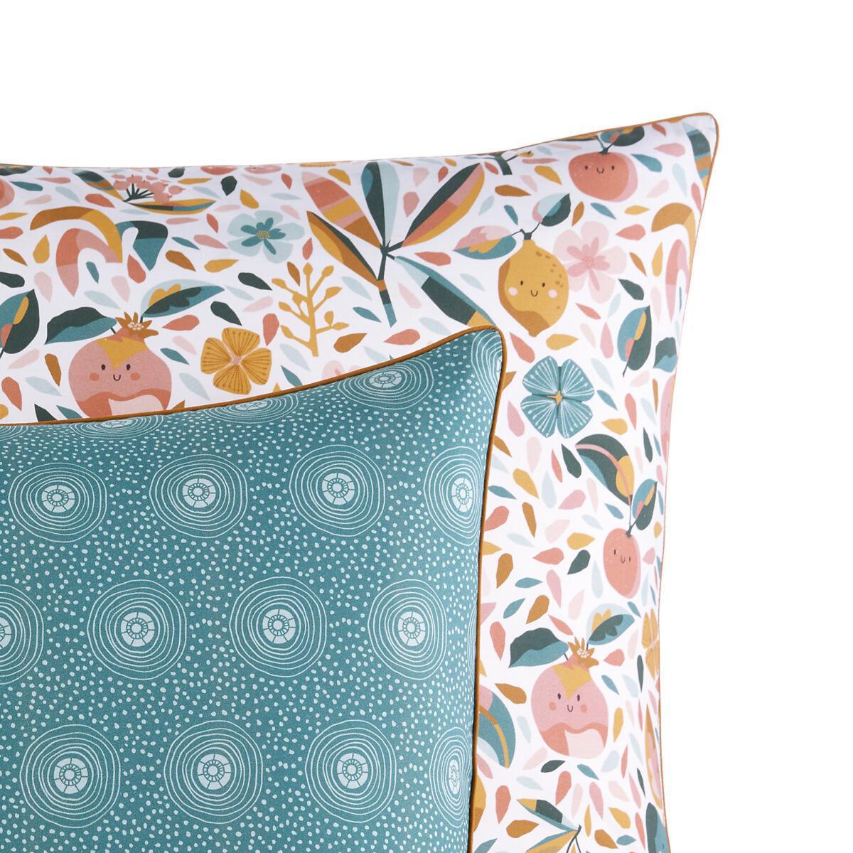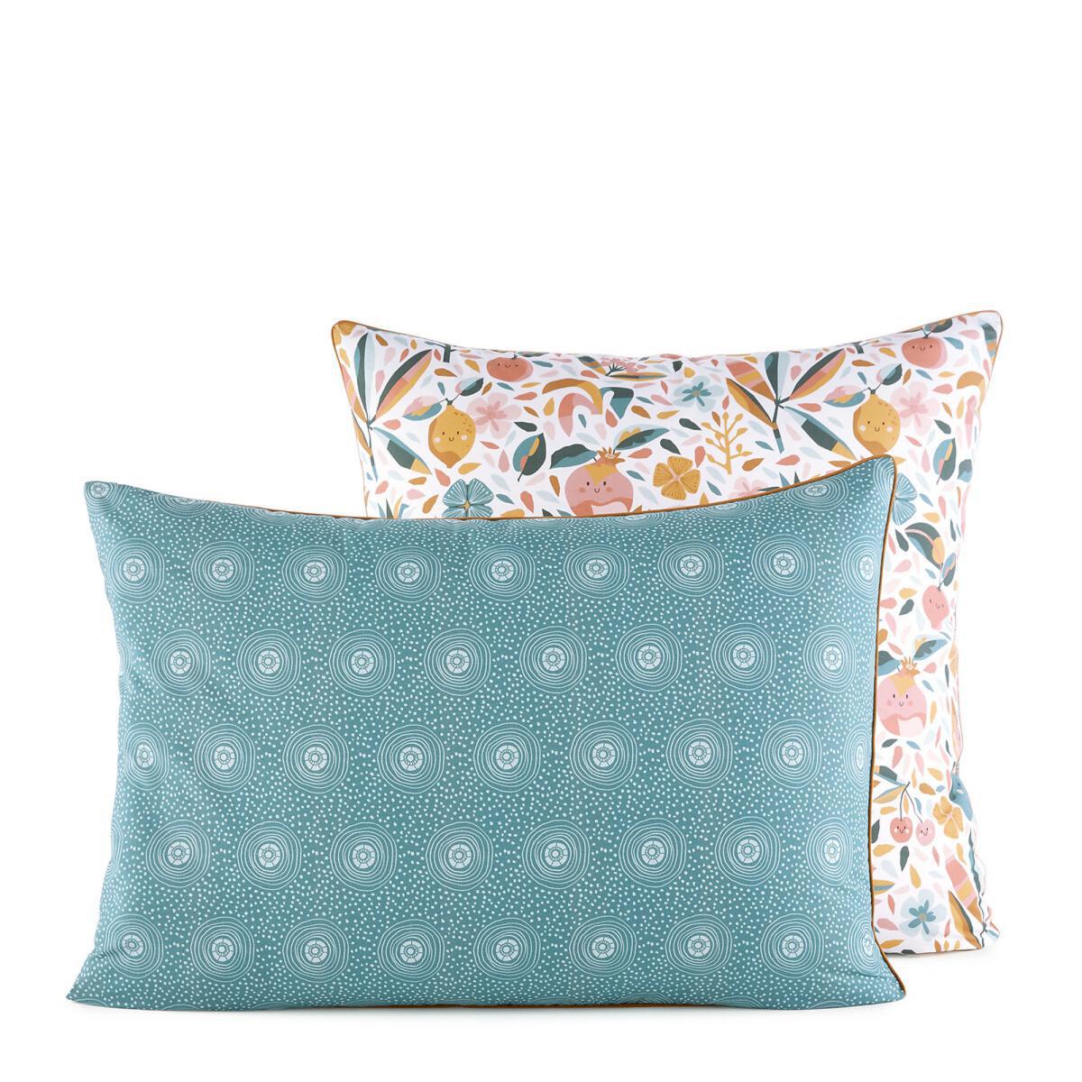 The Maoli pillowcase. The colourful flowers and fruits on this bedding herald the joys of summer! This pillowcase is made of cotton percale (80 threads / cm2) from organic farming, soft, pleasant and healthy on your child's skin. Product Details. Pure cotton from organic farming. 1 side with fruit & floral print, 1 side small motifs. Pillowcase washable at 40 °CAdditional Information. Organic cotton: grown without the use of pesticides or chemical products. Organic farming protects the environment and the health of those who harvest it. Our organic cotton bed linen is very soft and gentle against your skin. This product labelled STANDARD 100 by OEKO-TEX® - certificate no. CQ 1102/4 IFTH follows a certified and controlled manufacturing process which is respectful of your skin. The STANDARD 100 by OEKO-TEX® is the first label that meets the needs of consumers in terms of human ecology. It guarantees the absence of harmful substances or those potentially presenting a risk to health. Size. 50 x 70cm: Rectangular. 65 x 65cm: Square.
