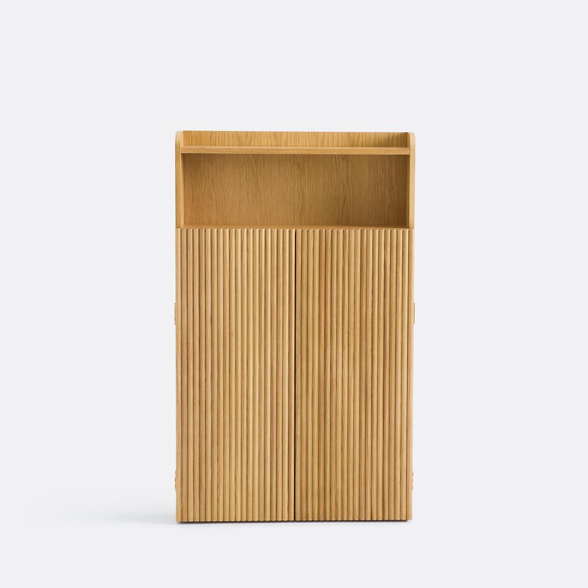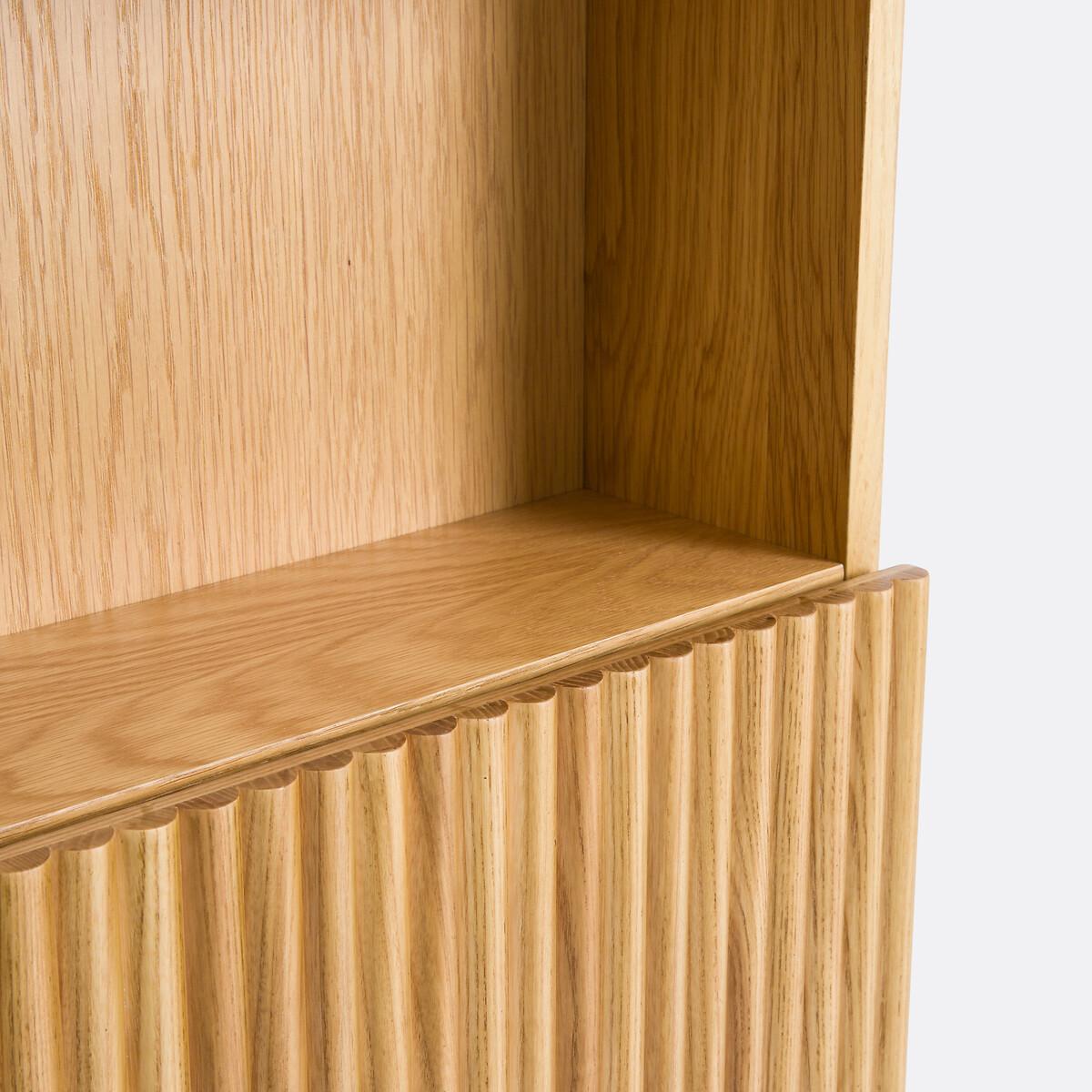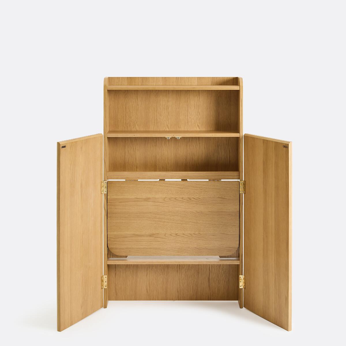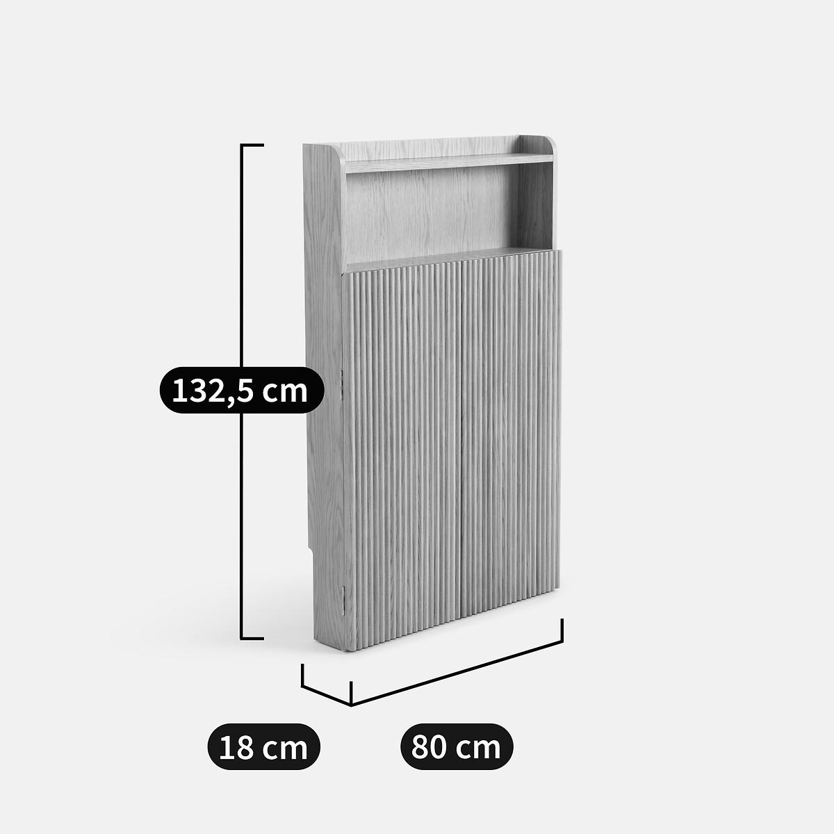 The Maoro dual purpose shelf unit desk is part of our Les Ingénieux collection. Creations full of ideas to make life simpler and everyday life more beautiful, imagined by our designers in France..Compact thanks to its fold-down top, the Maoro shelf unit desk optimises space and creates a functional office corner where there is none. Created by La Redoute Intérieurs. Why you'll love it • A fold-down top to create a real workspace without losing m2 • When closed, it's an elegant, shallow shelving unit that fits in anywhere, even in a hallway • Finishes that leave nothing visible: with cable grommets for all your connections. • In FSC®-certified wood from sustainably managed forests : yes to reasoned production. Product Details • Oak veneered MDF structure, nitrocellulose varnish finish • 2 doors covered with solid ash half-round slats, finished in nitrocellulose varnish • Folding top behind doors • 2 shelves • Cable access hole • Wall fixing (screws and plugs not supplied)Dimensions. Overall • Width: 80cm • Height: 132.5cm • Depth: 18cm • Weight: 39kg. Usable space • Folding desktop:W75.7 x H75 x D43cm • Centre shelf : W76.2 x H25 x D13.2cm • This product requires assembly. • WOOD FROM SUSTAINABLY MANAGED FORESTS. FSC® certified wood comes from forests that are environmentally, socially and economically well managed. Parcel Dimensions1 parcel • W146.5 x H21 x D63cm. 43.5kg