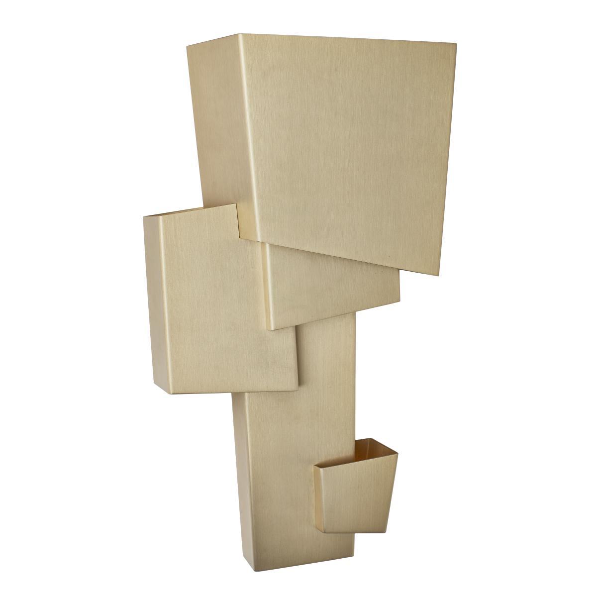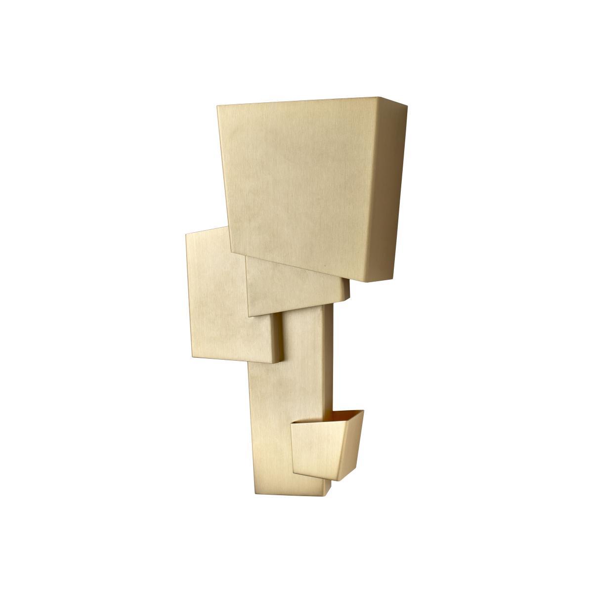 A true light sculpture, this wall light is the work of Éric de Dormael. This French sculptor designs and makes unique works with architectural forms in metal, papier-mâché and resin. He adds light sources into his sculptures to turn them into decorative items. Drawing holds a crucial place in his work and is at the origin of each creation. Each idea is firstly worked on in pencil. The MAP1 wall light has an unstructured assembly of brushed brass geometric forms. The asymmetric, graphical, contemporary lines provide it with an incredible dynamism. This wall light provides sculptural, poetic lighting. The wall space is enhanced by subtle interplays of shapes, shadows and light. The gaps allow light beams to escape which give rise to a fascinating interplay of light, highlighting the forms and revealing their shapes. This lighting is diffuse, pleasant and there’s no glare. Whether on or off, the visual impact of the MAP 1 wall light is very strong! This three-dimensional painting changes and transforms depending on the viewing angle, evoking a unique and always different emotion. This light creates images, impressions and light sensations.