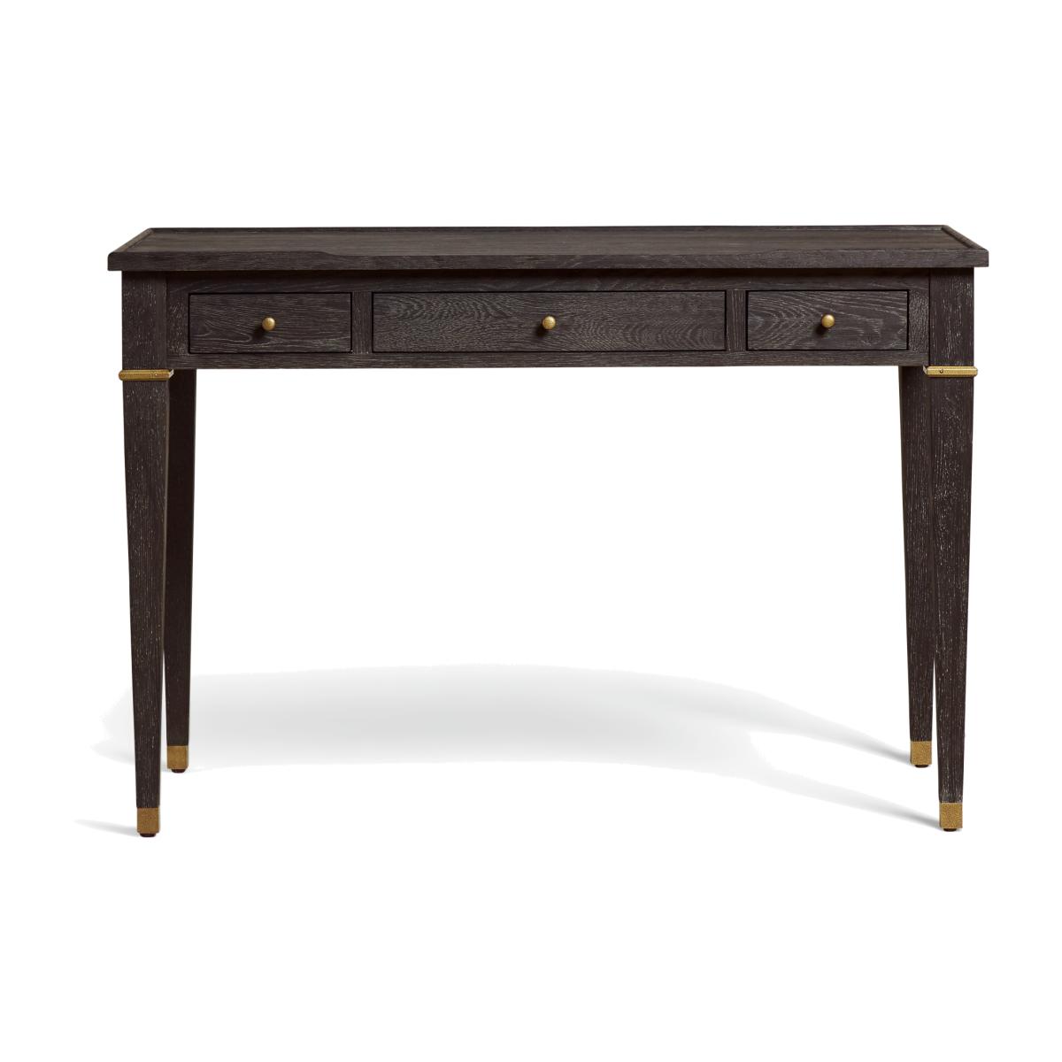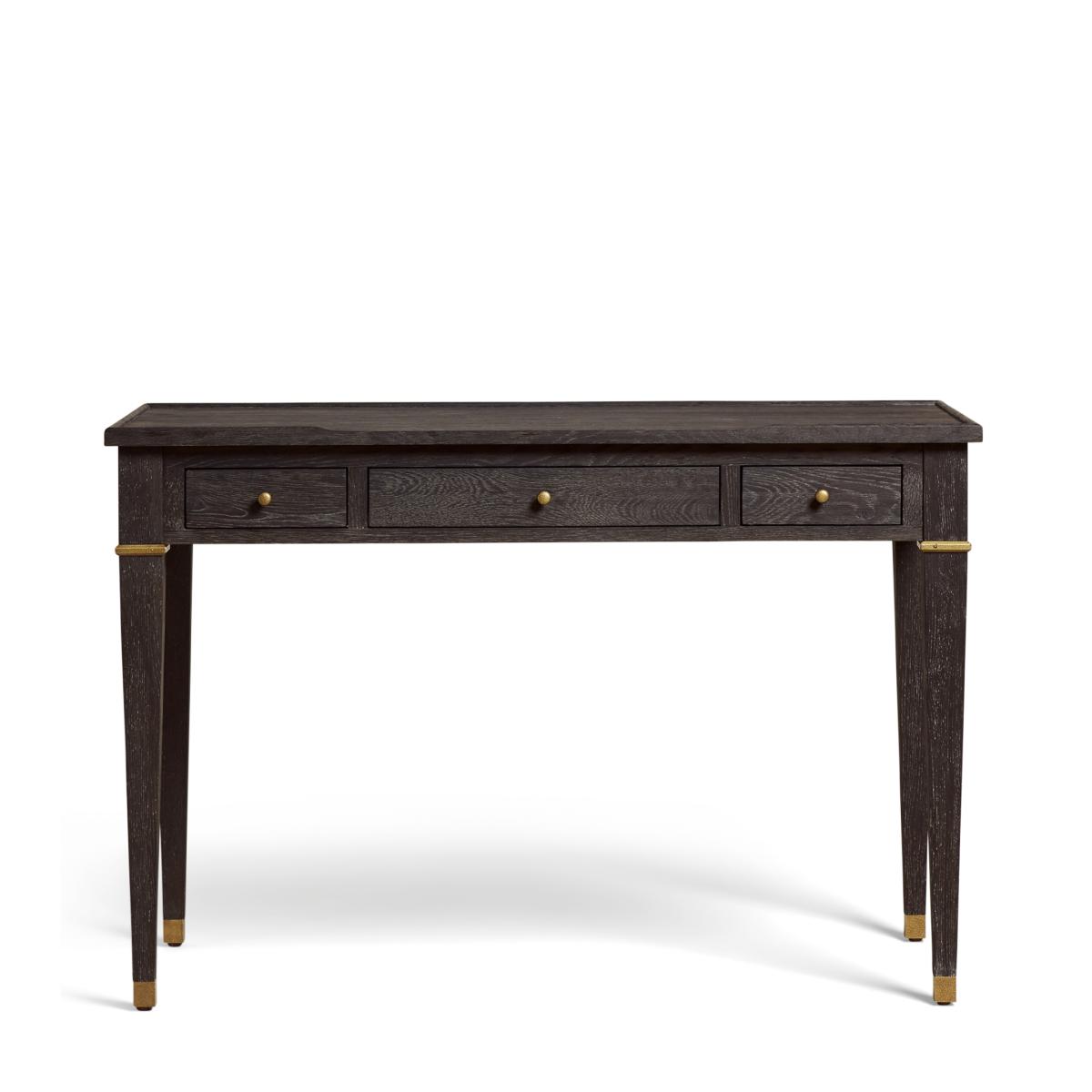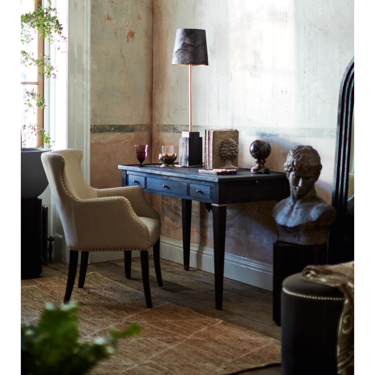 I love this desk for its sleek, timeless appeal and the rich ebonised oak finish which adds an understated sophistication. It works particularly well in classic or traditional interiors, but can also bring depth to a contemporary space when styled with modern accessories. Practical tips include pairing it with a statement desk lamp and organising the drawers with simple, elegant storage options. Additionally, keep the surface clutter-free to highlight its craftsmanship, and consider placing it against a neutral wall to allow its colour and design to stand out. Perfect for home offices, studies, or even a hallway console, it’s a versatile piece that blends style with function seamlessly.