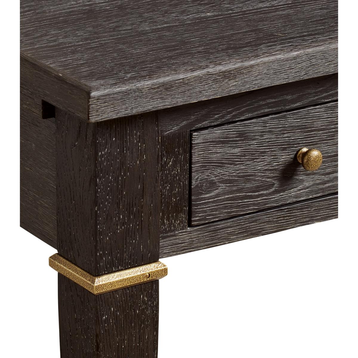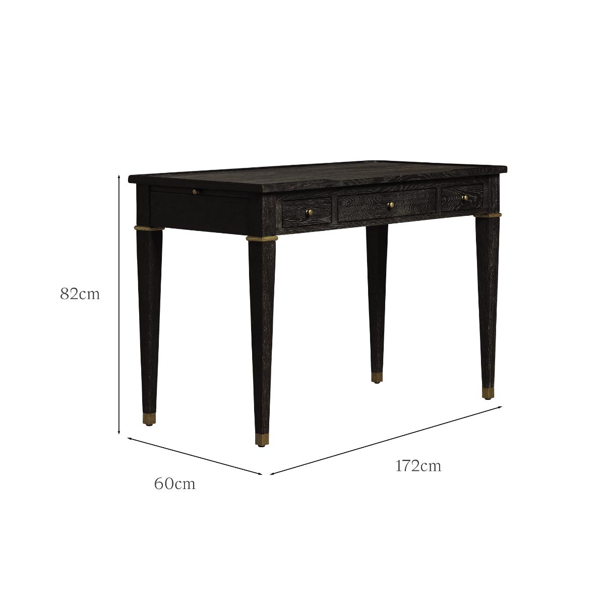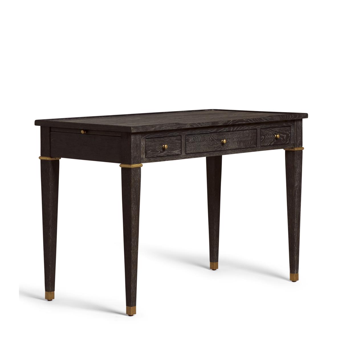 I love this desk for its sleek, timeless appeal and the rich ebonised oak finish which adds an understated sophistication. It works particularly well in classic or traditional interiors, but can also bring depth to a contemporary space when styled with modern accessories. Practical tips include pairing it with a statement desk lamp and organising the drawers with simple, elegant storage options. Additionally, keep the surface clutter-free to highlight its craftsmanship, and consider placing it against a neutral wall to allow its colour and design to stand out. Perfect for home offices, studies, or even a hallway console, it’s a versatile piece that blends style with function seamlessly.