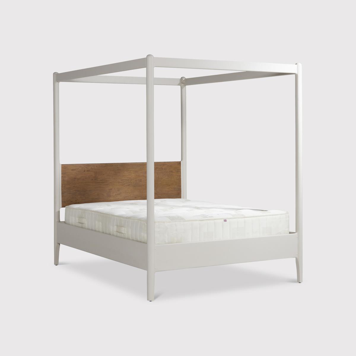 The Mara four-poster is a versatile piece that balances minimalist appeal with a touch of traditional charm. I love how its clean white frame provides a striking contrast to the warm, rich tone of the wooden headboard, making it adaptable for various interior styles-from Scandi-inspired simplicity to more classic or boho themes. It works particularly well in bedrooms with neutral palettes or those that incorporate natural materials. To style it, consider layering with textured bedding and adding statement pendant lighting or fairy lights around the posts for a cosy, inviting atmosphere. Practical touches like opting for low-profile or white bedside tables keep the look fresh and light, ensuring the bed remains the focal point without overwhelming the space.