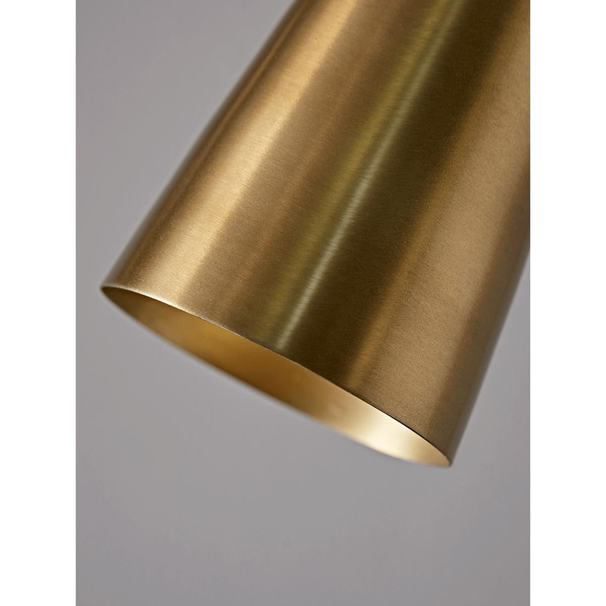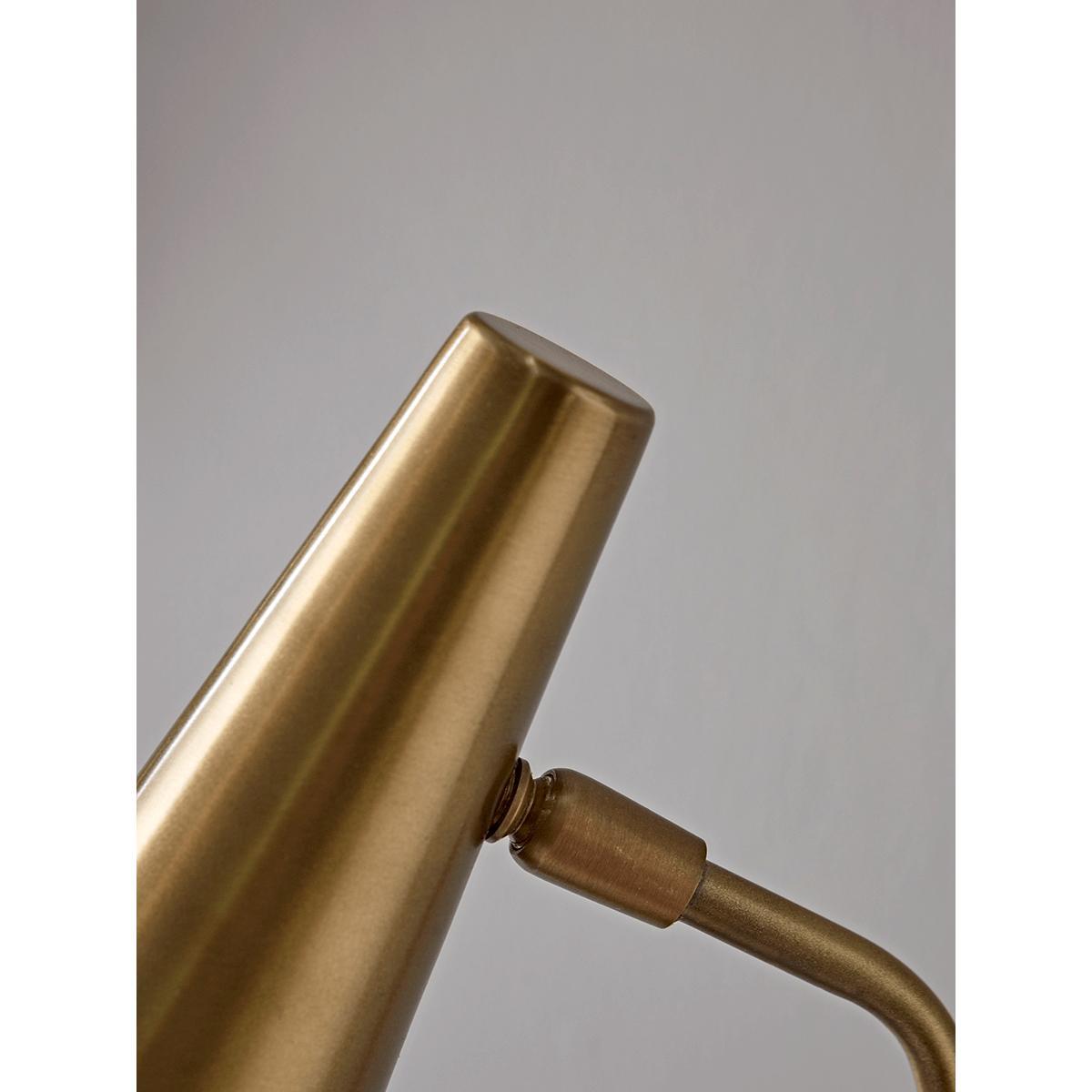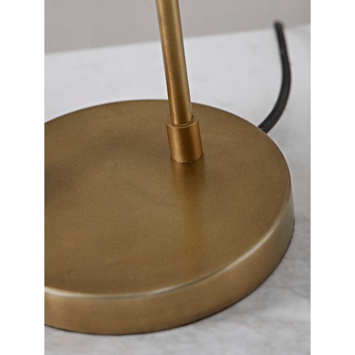 Contemporary and elegant with a striking brass finish, our sleek table lamp has a slender, conical shade with a brass inner to reflect the light and a weighty, round base. Use as a desk lamp in your home office, or place on any console or sideboard to bring a warming glow to your living space.