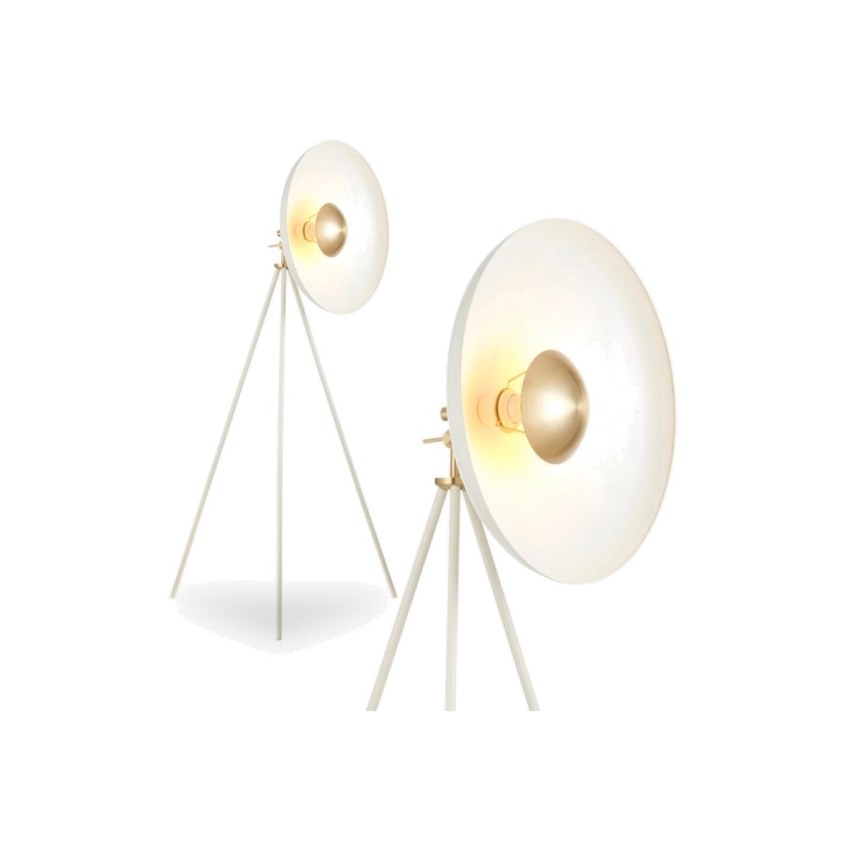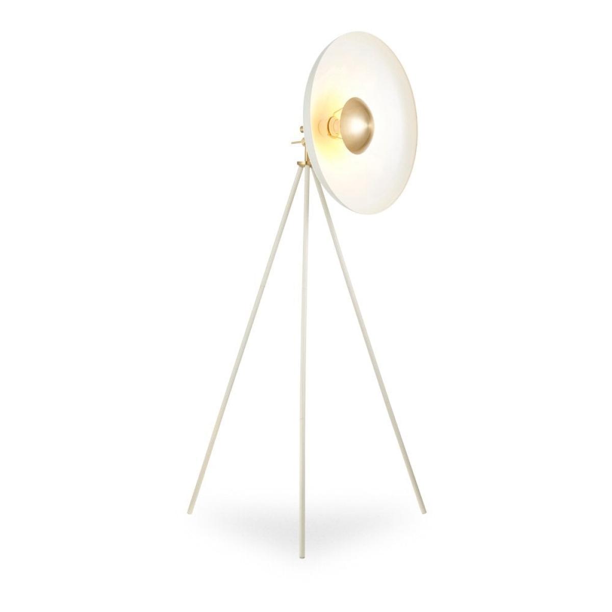 The Mara floor lamp in white is a contemporary, industrial tripod floor lamp with a matte white finish and contrasting matt nickel-plated light diffuser. This classic design features an adjustable 450-tilt head for directional lighting in your contemporary space. The height is also adjustable so you can have stylish lighting that is equally as functional.