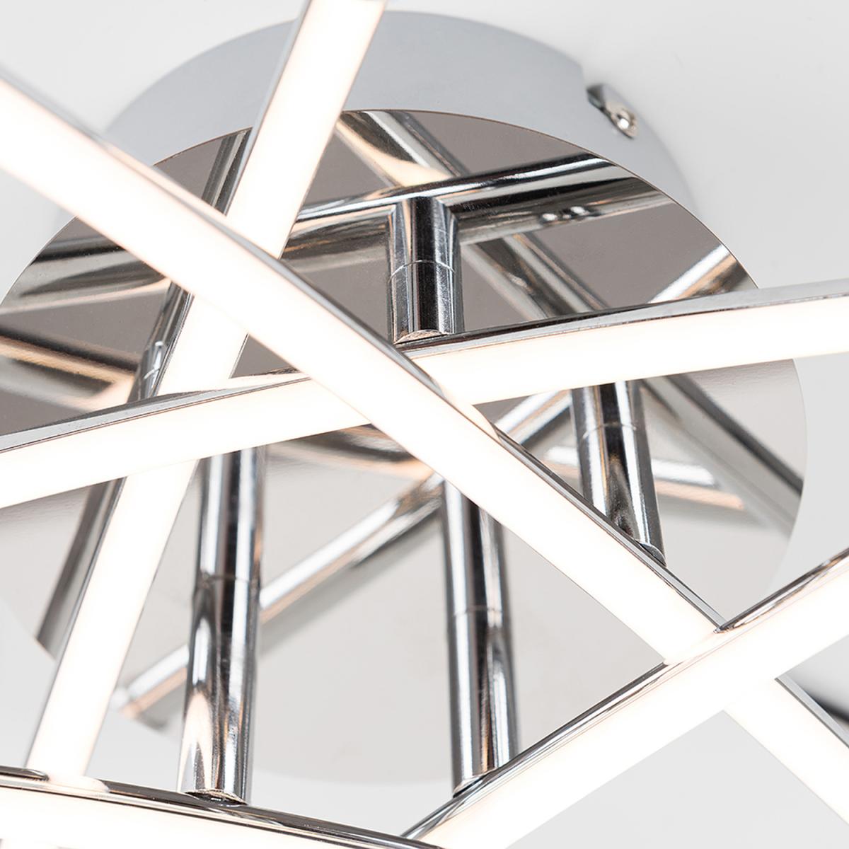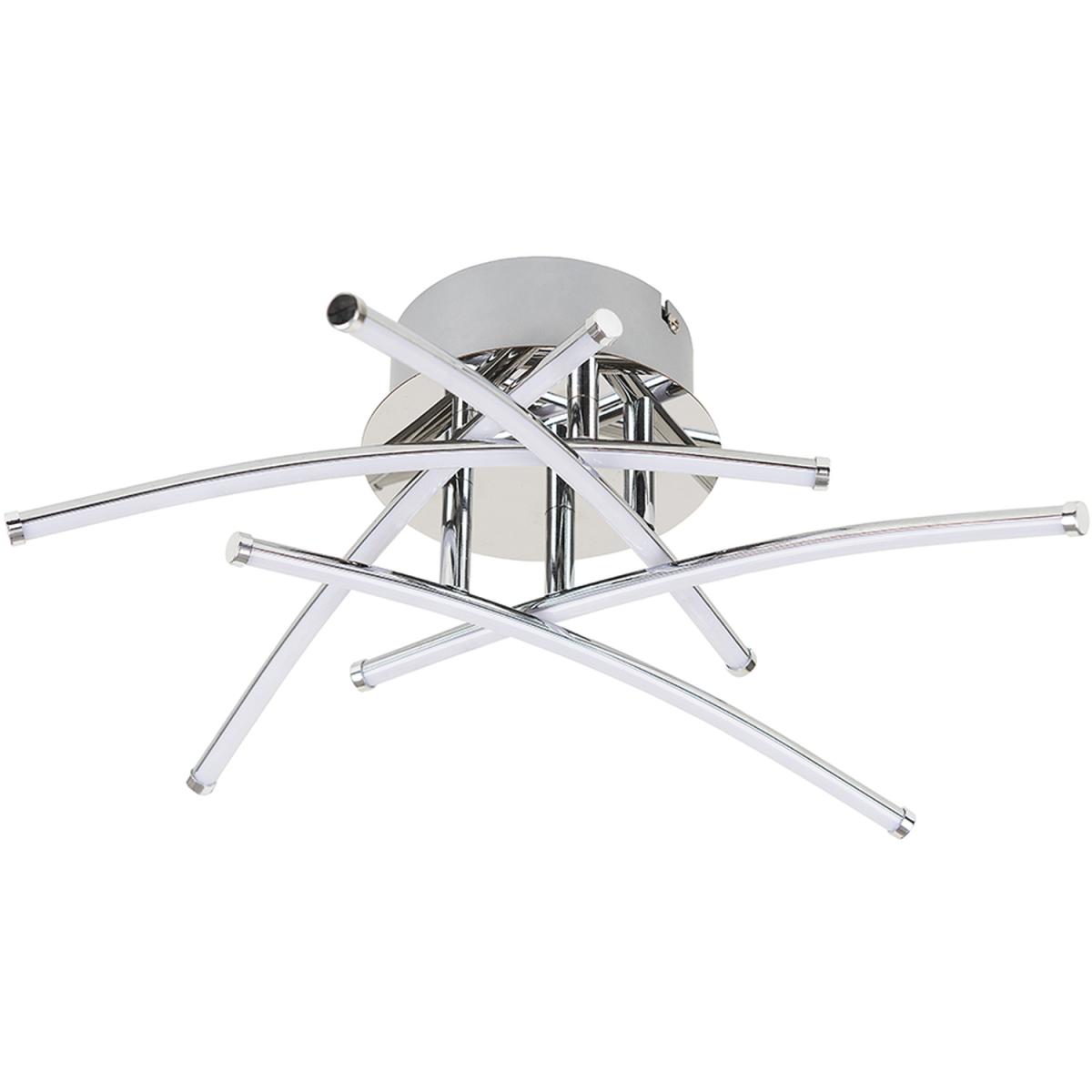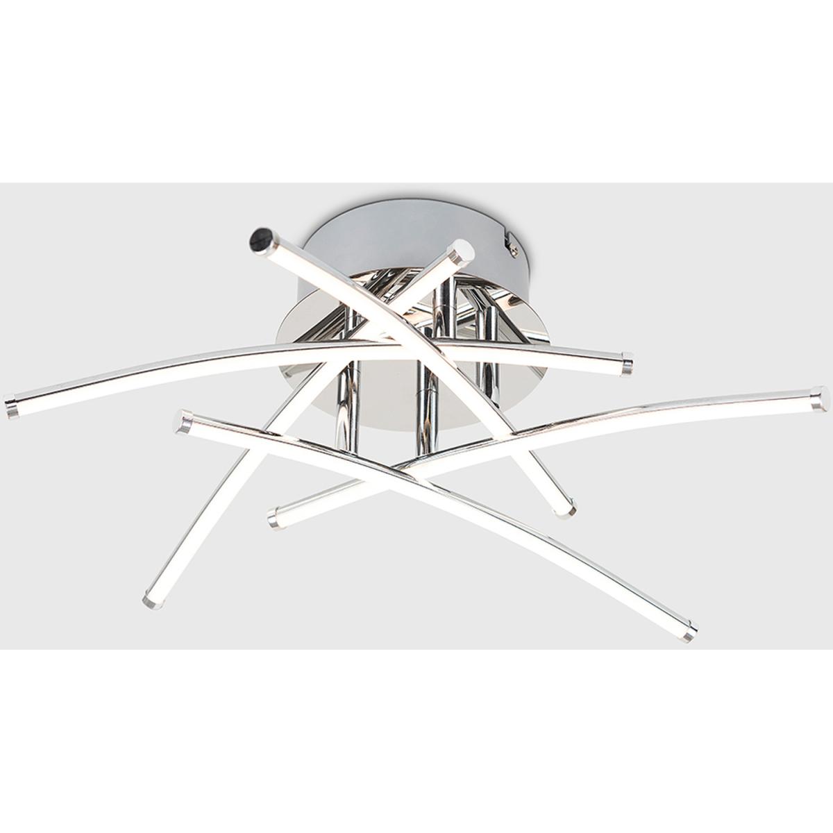 PModern sleek 5 way cross over design flushed ceiling light fitting in a polished chrome metal finish. This elegant ceiling light fitting comes supplied with integrated 25W warm white LED bulbs. This ceiling light would look great in any contemporary room. Ceiling lights are usually the main source of illuminating a room but with the many styles on offer today, also become a main focal point or talking point. The right fitting can make a real style statement and complete your living space look. Ideal for hallways, lounges, dining rooms and other living areas.p