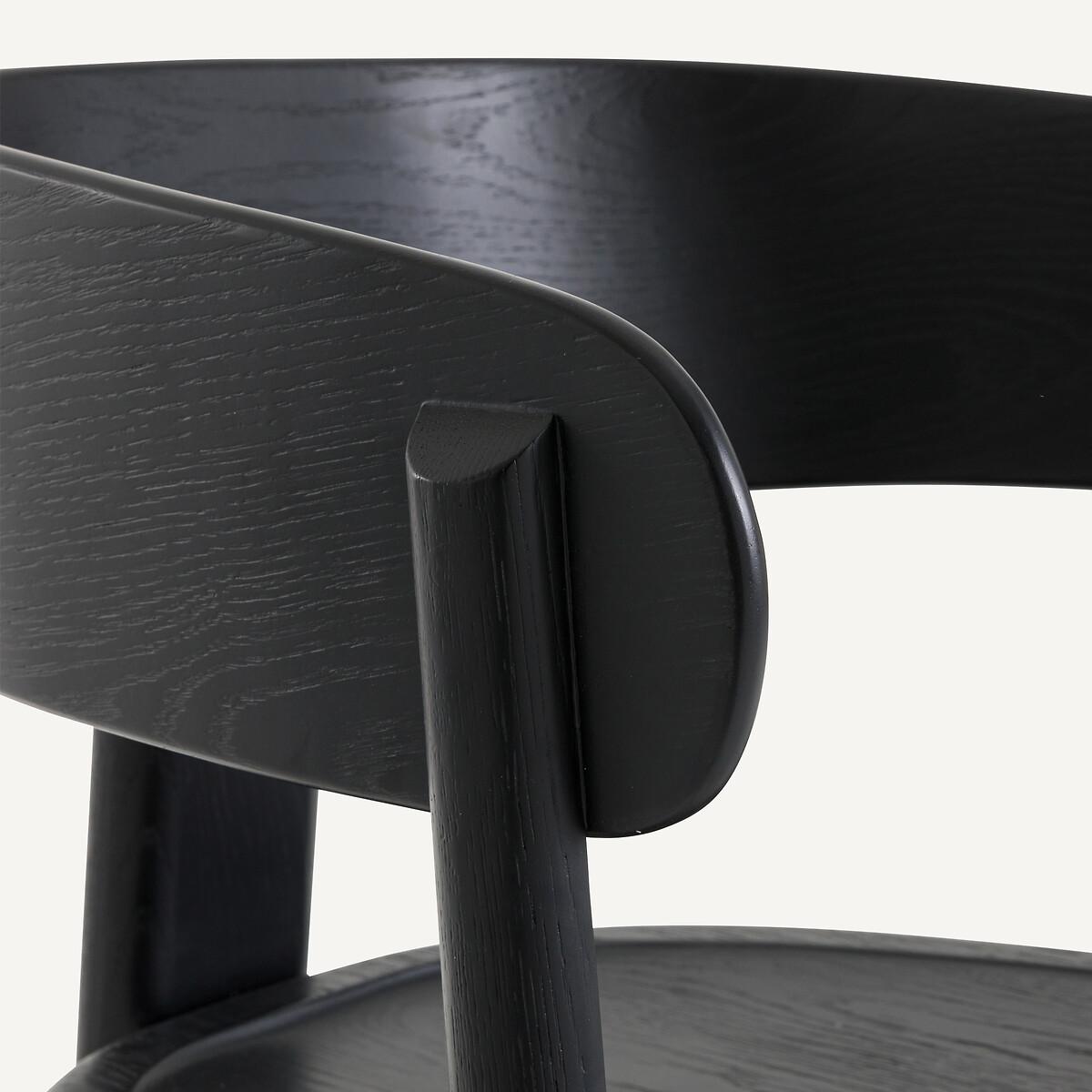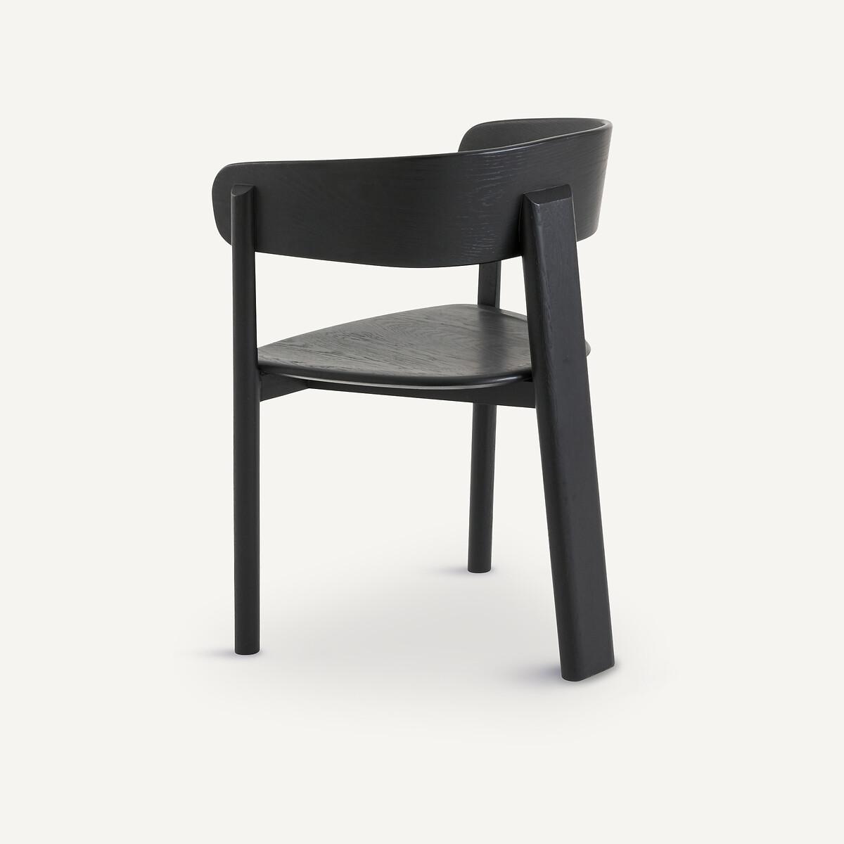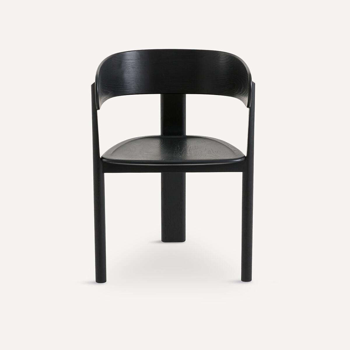 A creation by Emmanuel Gallina, exclusively for AMPM. the Marais chair is a contemporary table armchair with a simple, assertive style. The originality of its base with its three-legged design, finds its balance in its curves and bevelled cylindrical sections. A desire to work with primary lines, to offer a natural seat all in roundness. Marais is available here in a black or pearl gray tinted version, revealing the raised veining of the solid oak. Product Details • Base and seat in stained solid oak, matte nitrocellulose varnish finish • Backrest in stained oak veneered rubberwood plywood • 3 legs • Hollow seat. Dimensions • Width: 56cm • Height: 78cm • Depth: 53cm • Seat: L48 x H45 x D44.5cmDelivery:. Sold pre-assembled. Available for home delivery. Note! Please check that all access points are large enough to accommodate your delivery (doors, stairs, lifts). • WOOD FROM SUSTAINABLY MANAGED FORESTS. FSC® certified wood comes from forests that are environmentally, socially and economically well managed. Parcel dimensions and weight1 parcel • L61 x H84 x D58cm, 13kg