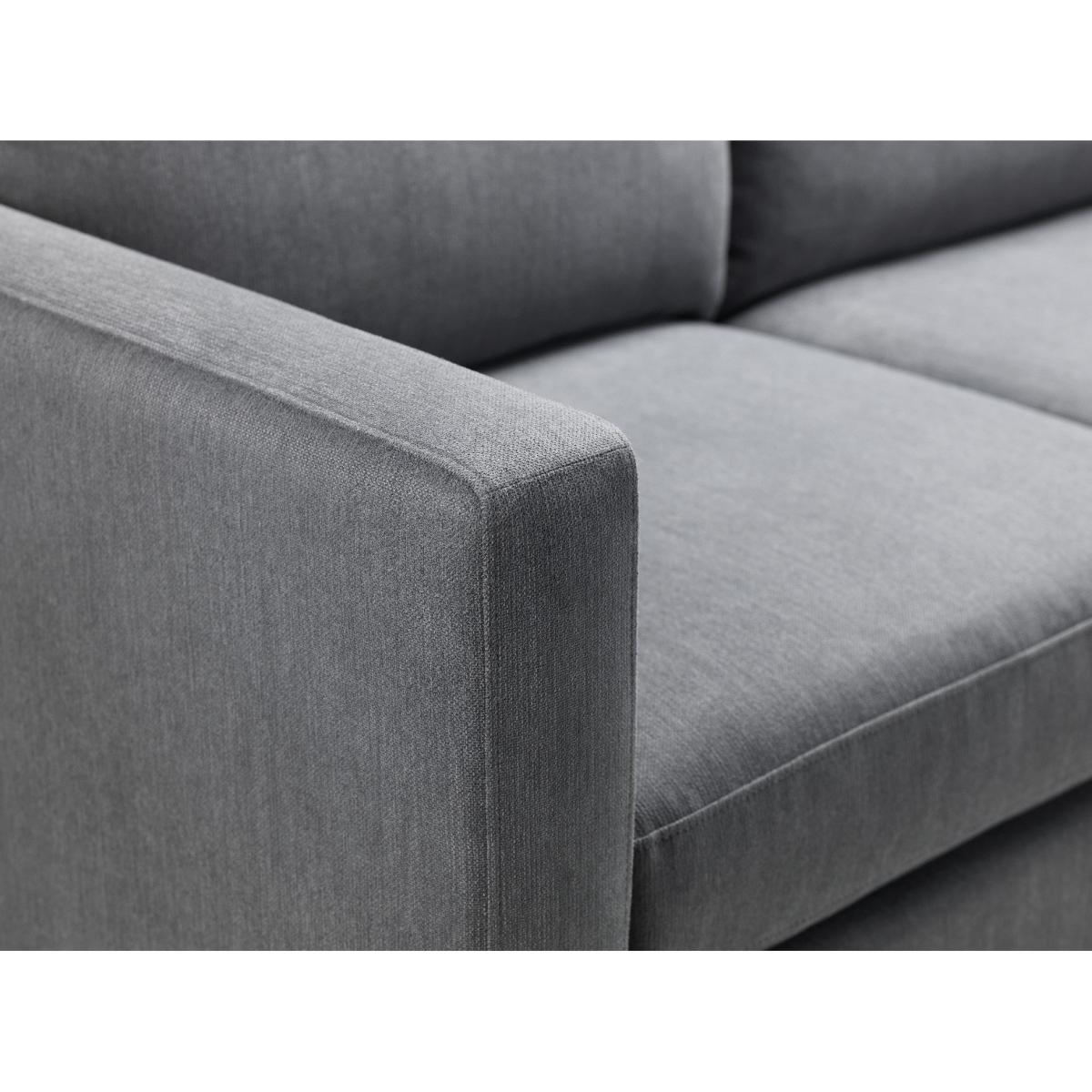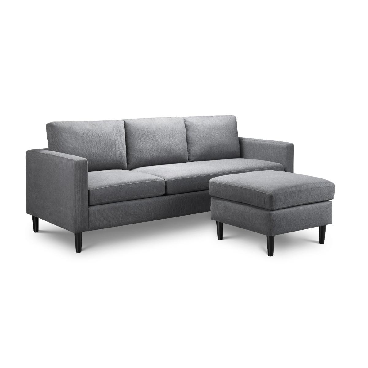The Maran is a timeless design that blends seamlessly into modern and retro interiors. Upholstered in soft-touch linen, the generous cushions encourage hours of leisurely relaxation with your feet up in front of the TV or with a book. The versatile Maran can be a corner sofa, or if you prefer move the cushions and create a 3 seater sofa and ottoman. Just choose the best design for your living room!Beautifully upholstered in a soft-touch forge grey linen Classic black tapered legs. Use as a corner sofa or a 3 seater sofa with a separate ottoman. Seats three people comfortably. Easy self-assembly Corner Sofa - 80cm H x 226cm W x 148cm DSofa - 80cm H x 226cm W x 82cm DOttoman - 47cm H x 65cm W x 67cm D