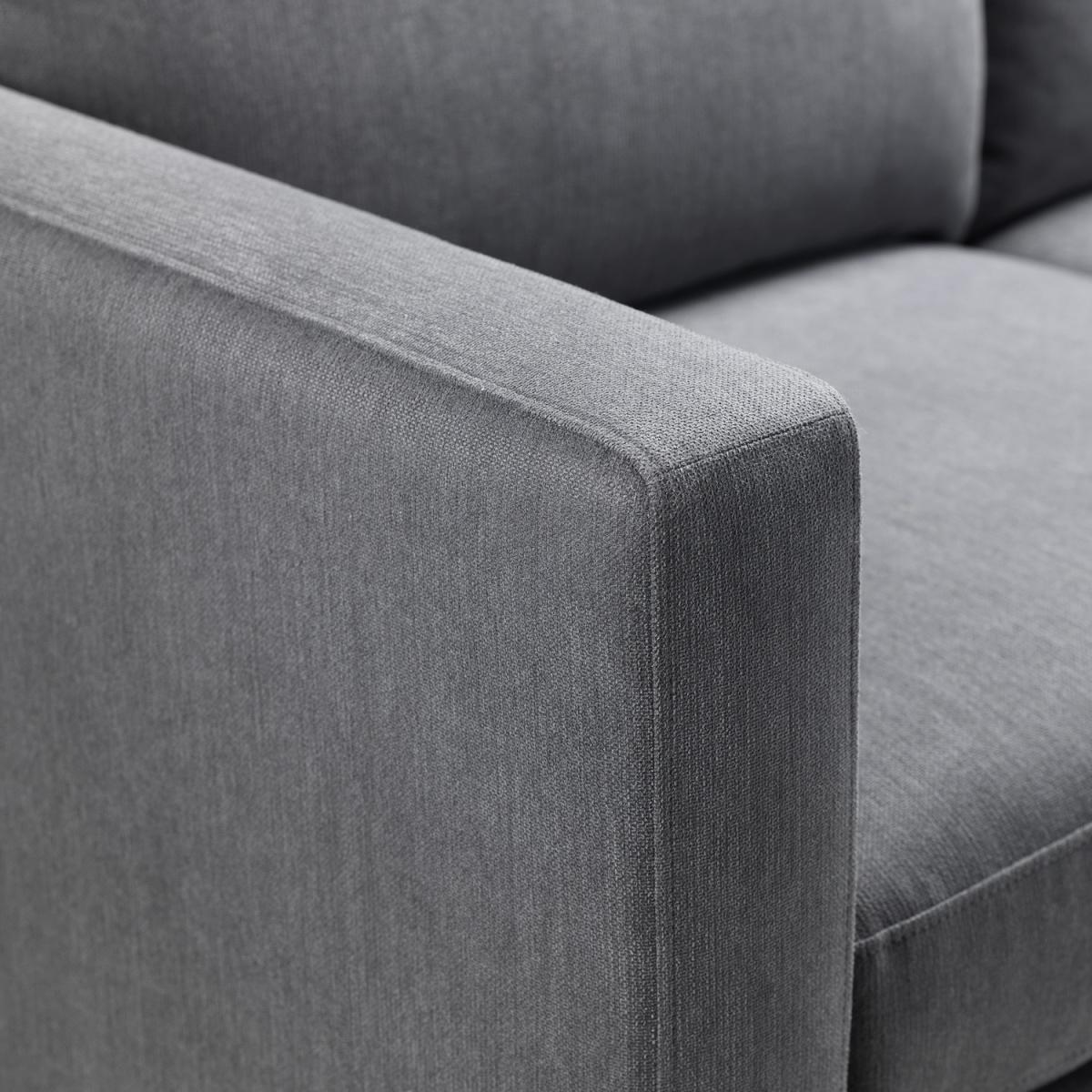 The Marant corner sofa is a timeless design upholstered in a soft touch grey linen fabric. Marant is extremely versatile, designed to be arranged in multiple configurations including a left or right-hand chaise or separate sofa and ottoman. Narrow arms create a neatly compact scale and also provides the maximum amount of seating space making it perfect for a huge variety of lounge settings. Upholstered in soft touch forge grey linen fabric.