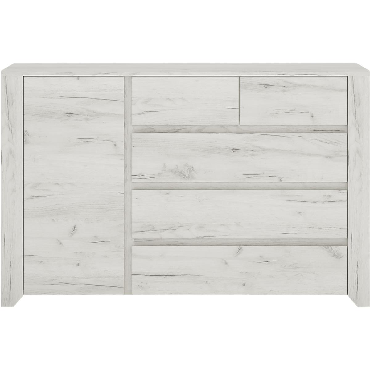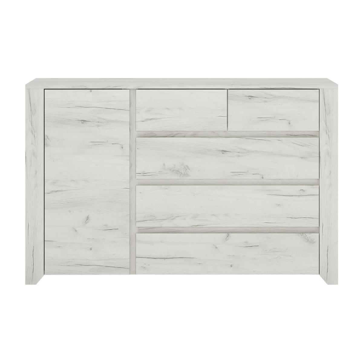 Marbel One Door Five Drawer Chest - White Craft Oak