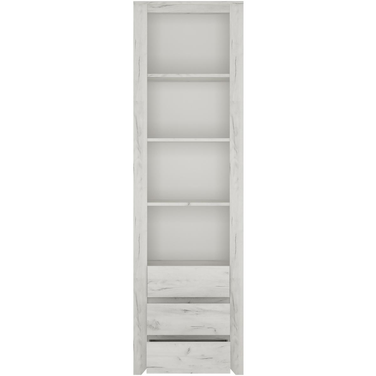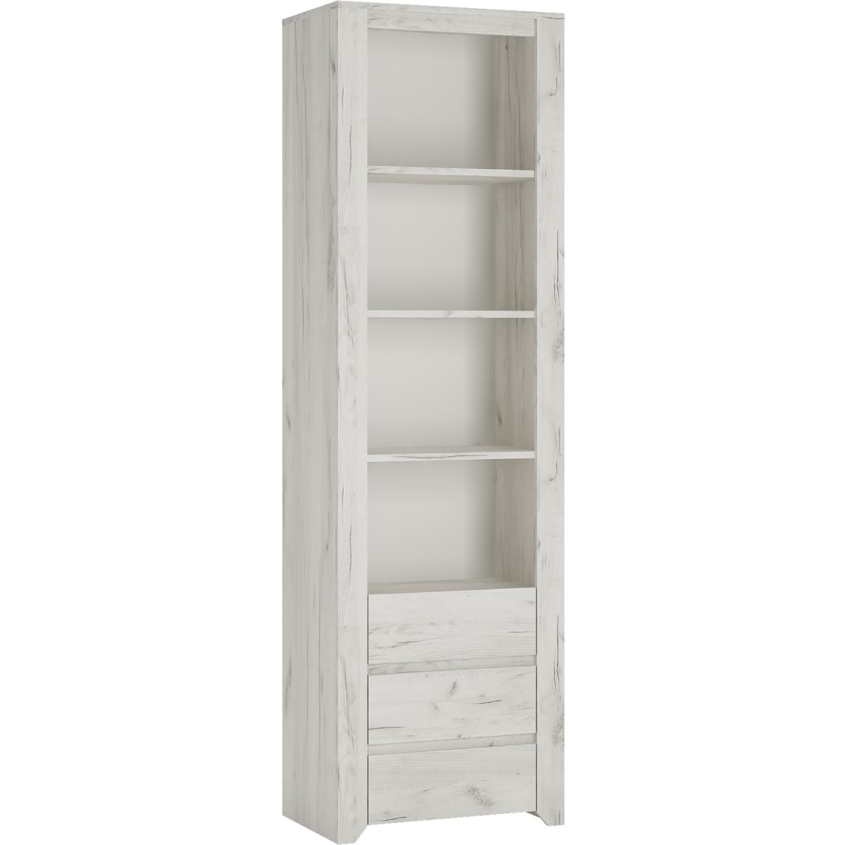 Marbel Tall Narrow Three Drawer Bookcase - White Craft Oak