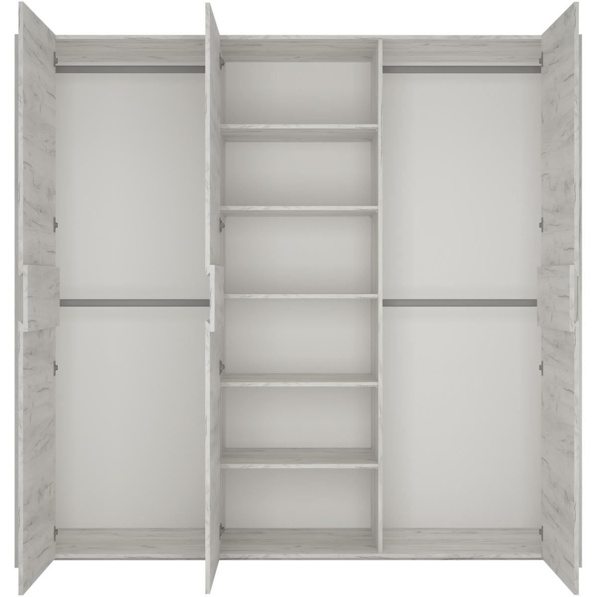 Plenty of space with 4 hanging rails and lots of shelves - a great addition to any bedroom. This beautiful bedroom collection is contemporary and stylish and suitable for all age groups, finished in a modern hard wearing white crafted Oak melamine.