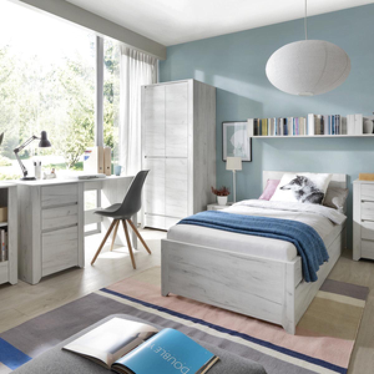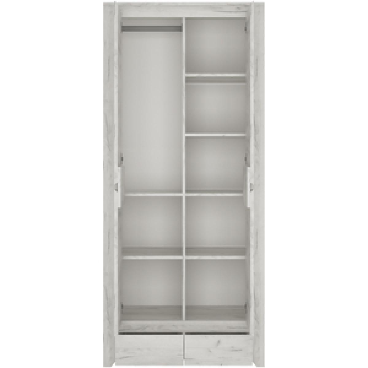 This beautiful bedroom collection is contemporary and stylish and suitable for all age groups, finished in a modern hard wearing white crafted Oak melamine. This 2 door Wardrobe is fitted inside with lots of adjustable shelves and has 2 handy drawers at base.