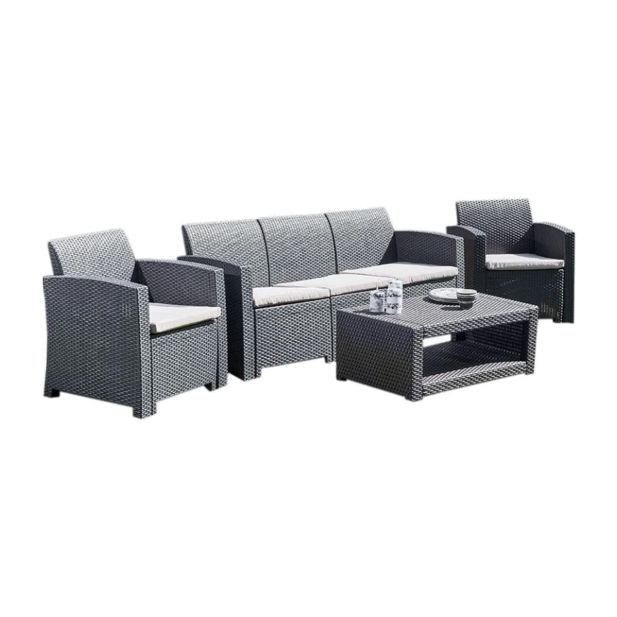 The Marbella 5 Seat Rattan effect Sofa Set with Coffee Table won't fail to impress once it is introduced to your home. Thanks to its contemporary design and sophisticated minimalist colours, it adds a whole new dimension to your lifestyle at home, inviting you to spend even more time out in the garden, conservatory or any other space you feel it fits into.