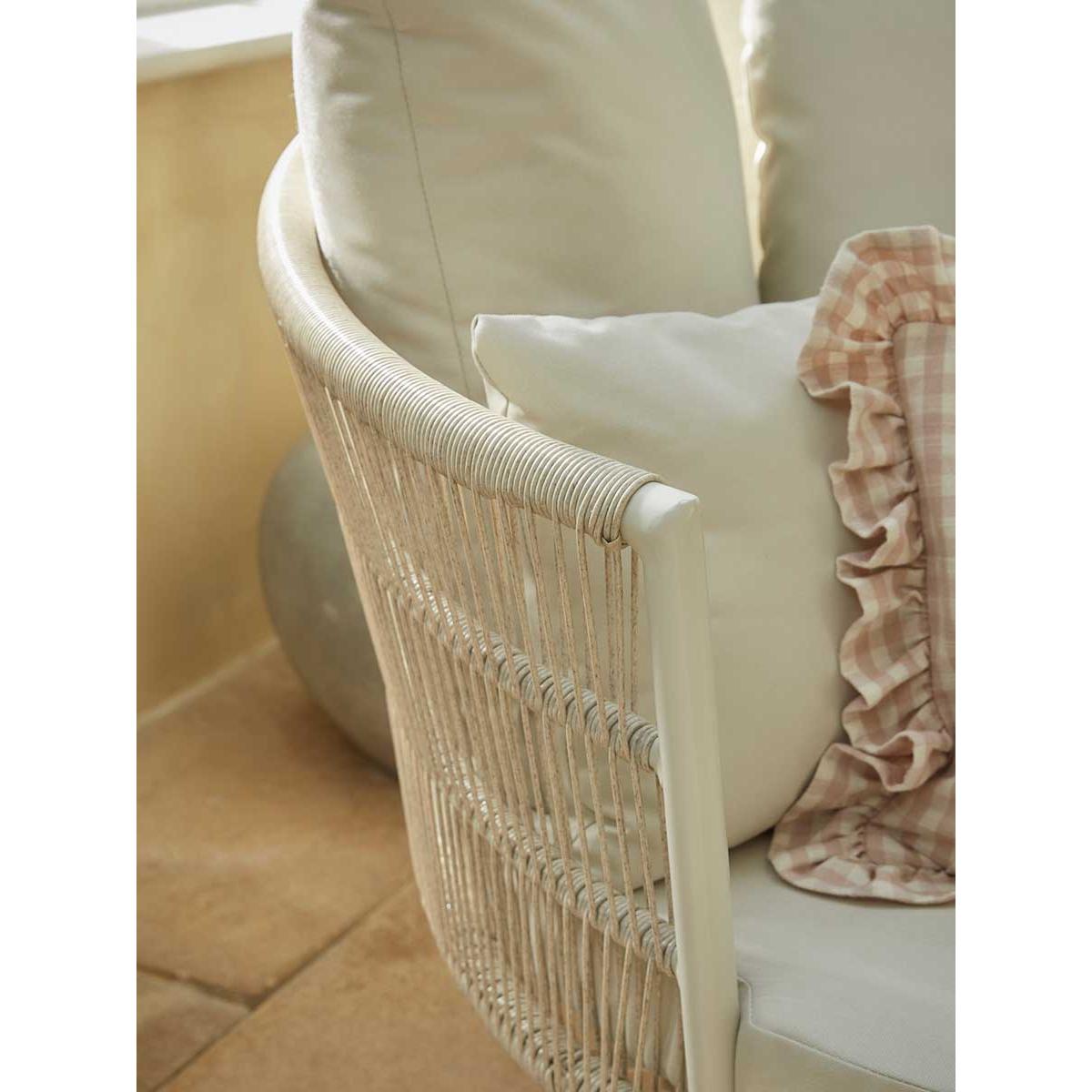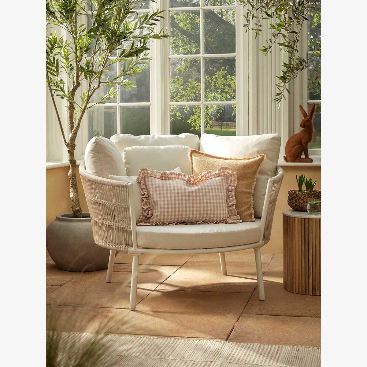 Relax and enjoy restful days in our Marbella Occasional Chair. A curvaceous aluminium frame pairs with plump and sumptuously soft cushions that create the most wonderful place for you to sink in to and while away the summer days. High sides and woven wicker arms in neutral shades add a gentle softness to the frame, and works well either placed indoors to bring some comfort to your home or placed outside to extend your living space to your garden.