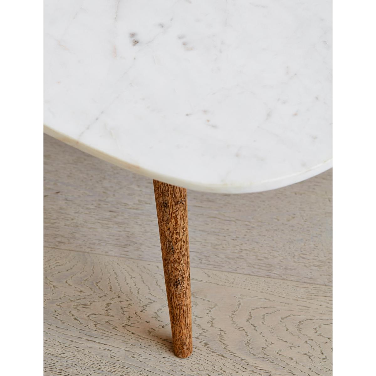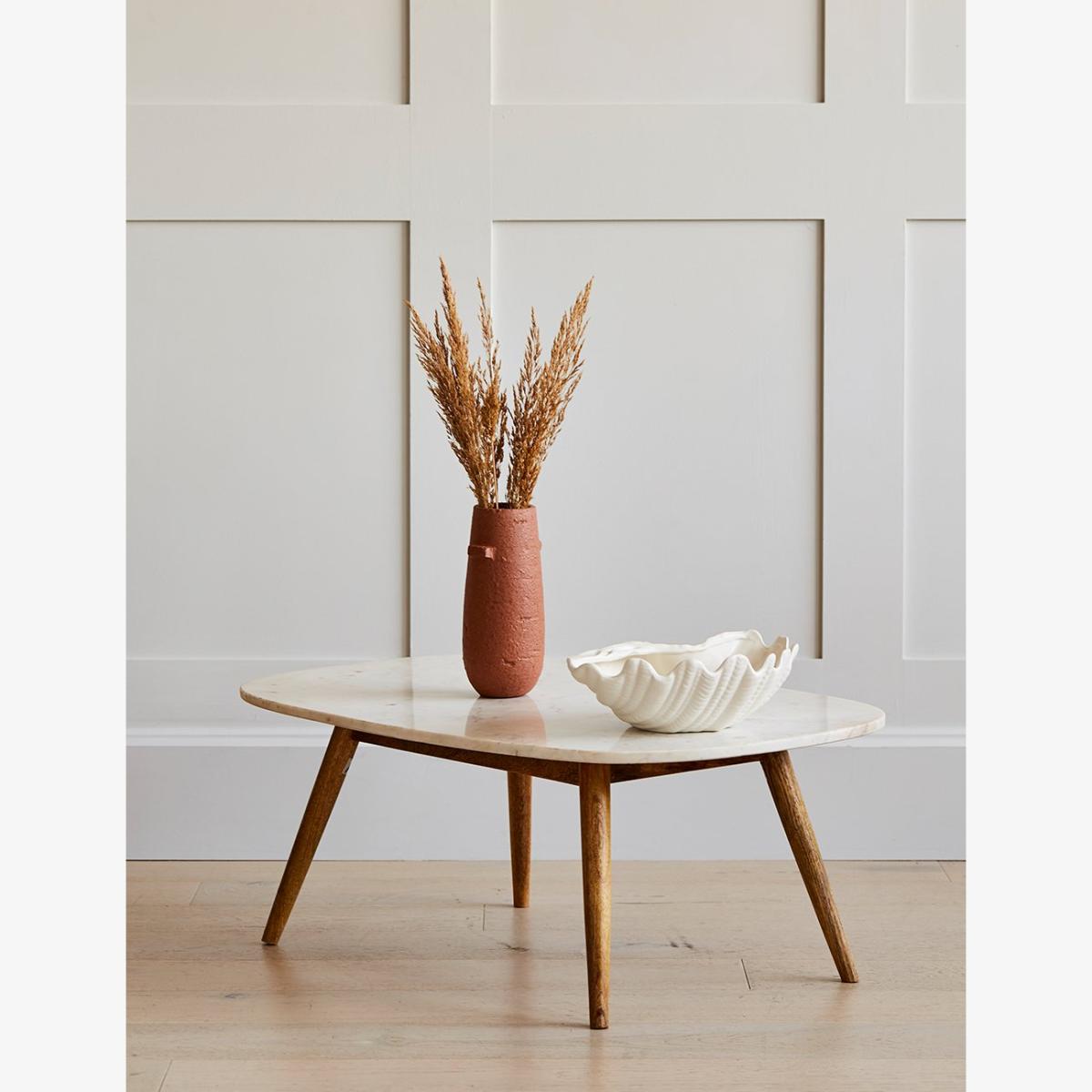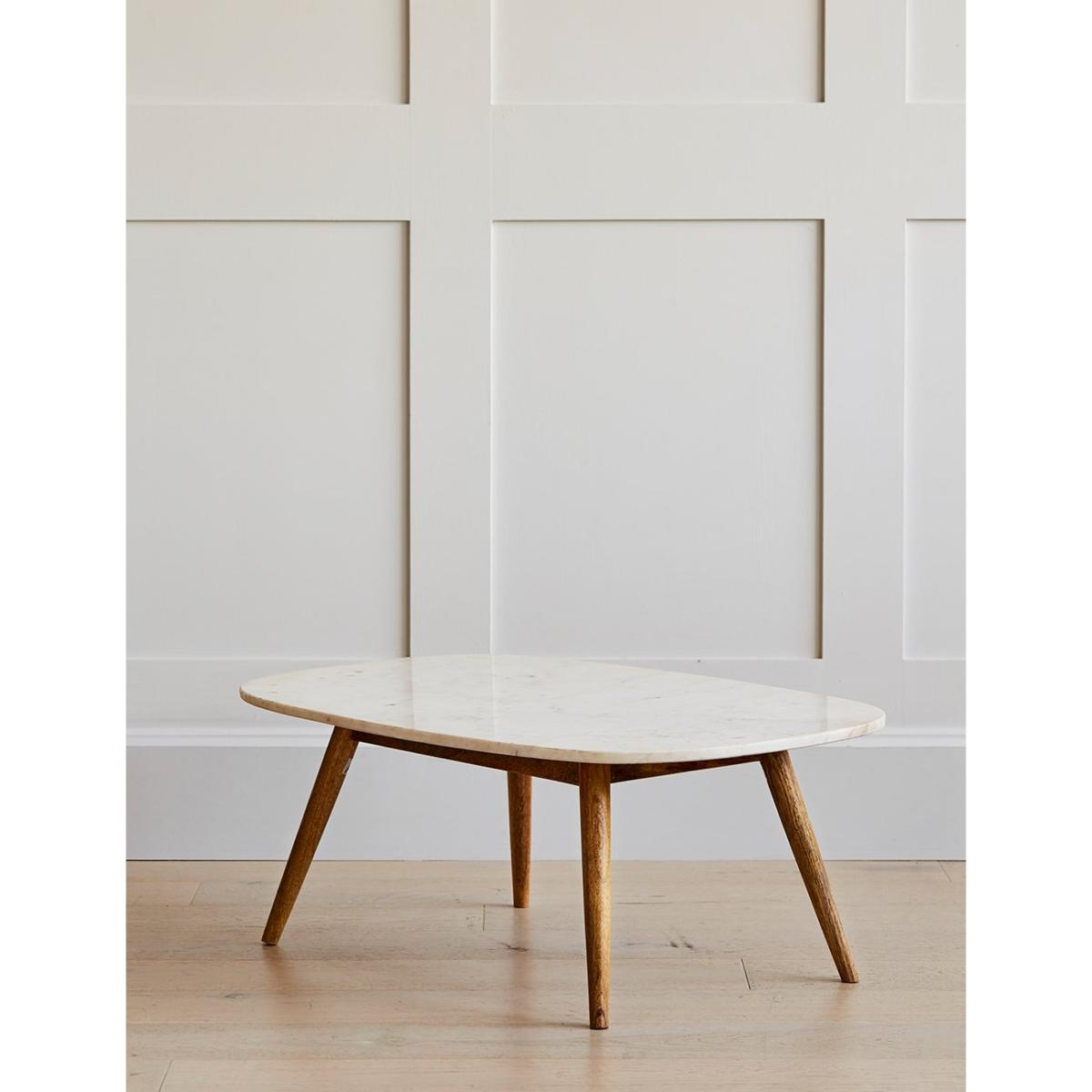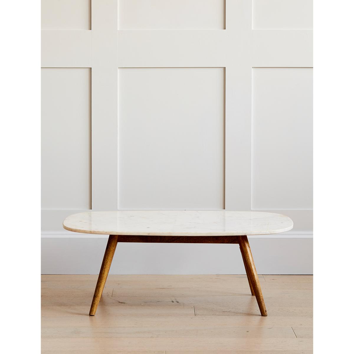 This stylish coffee table combines a wooden frame and marble top to create a timeless design that would complement any style of décor.