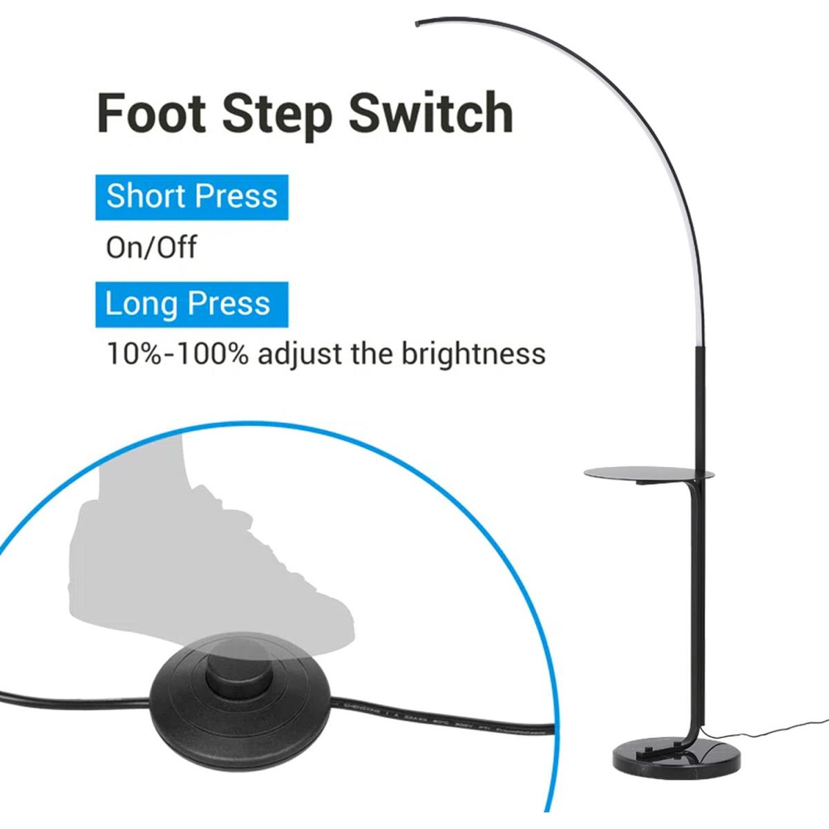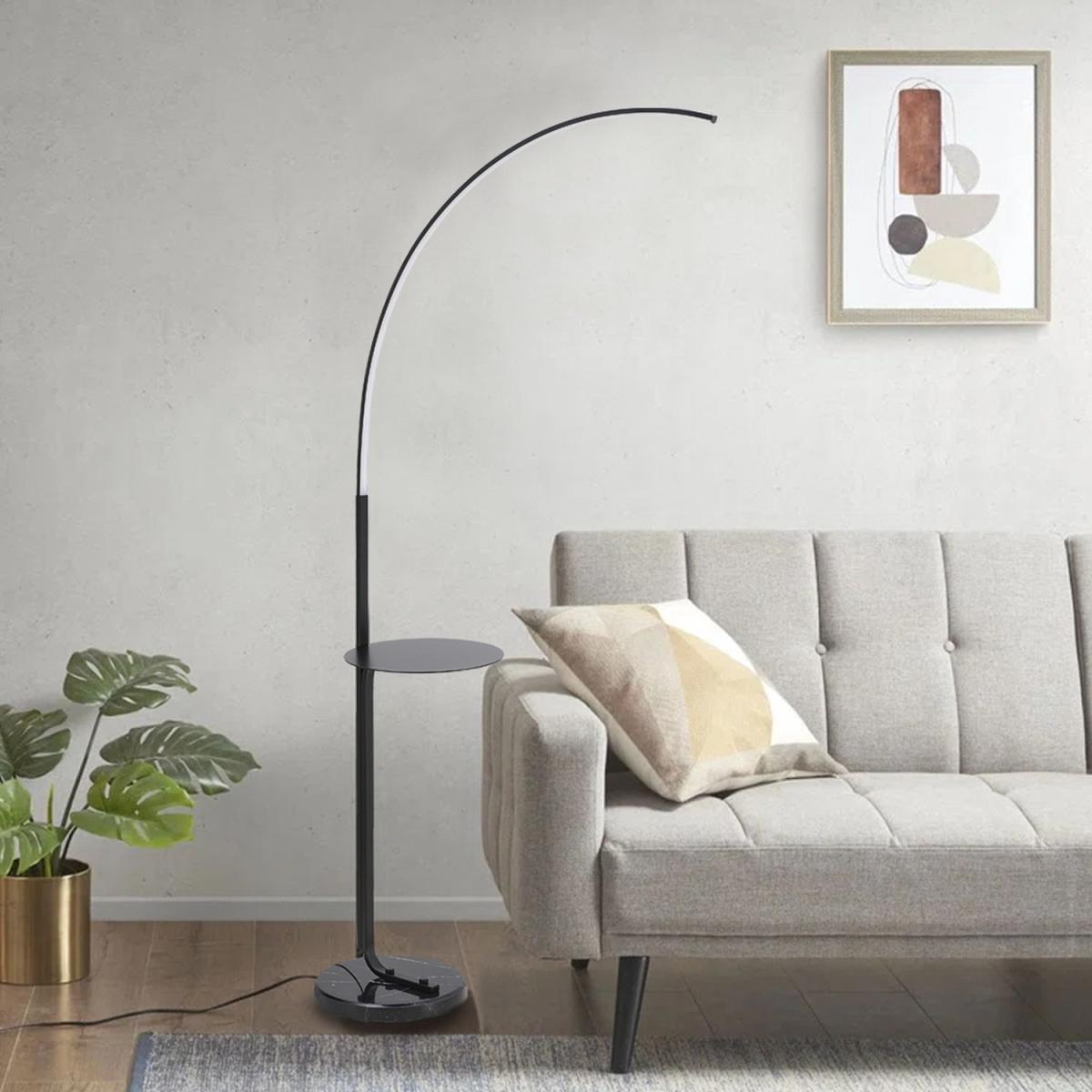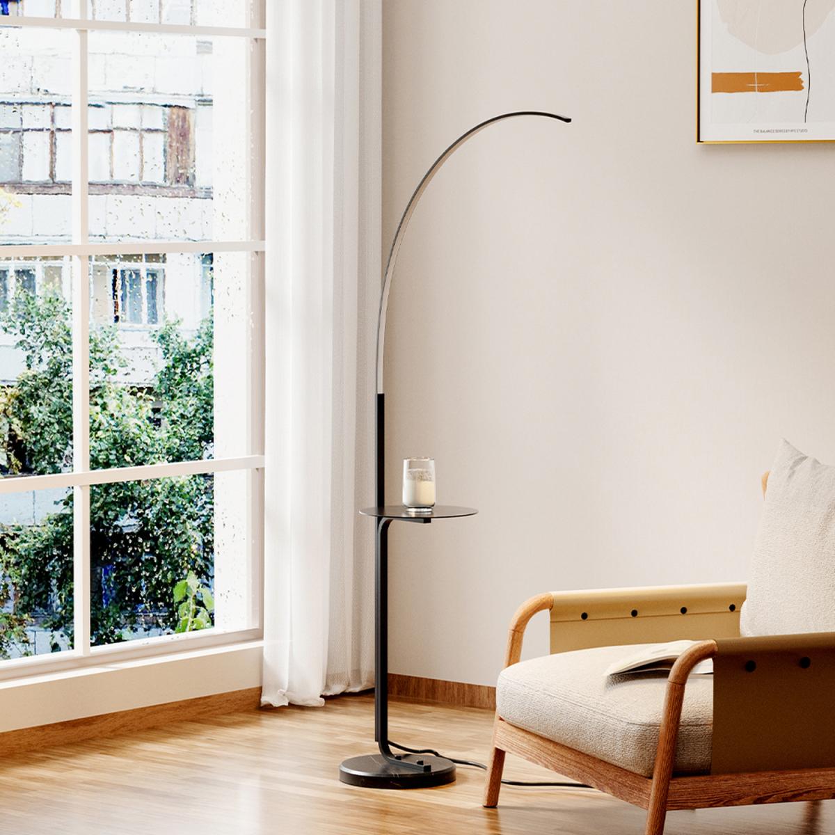 Marble Arc Minimalist Floor Lamp with Tray - Black