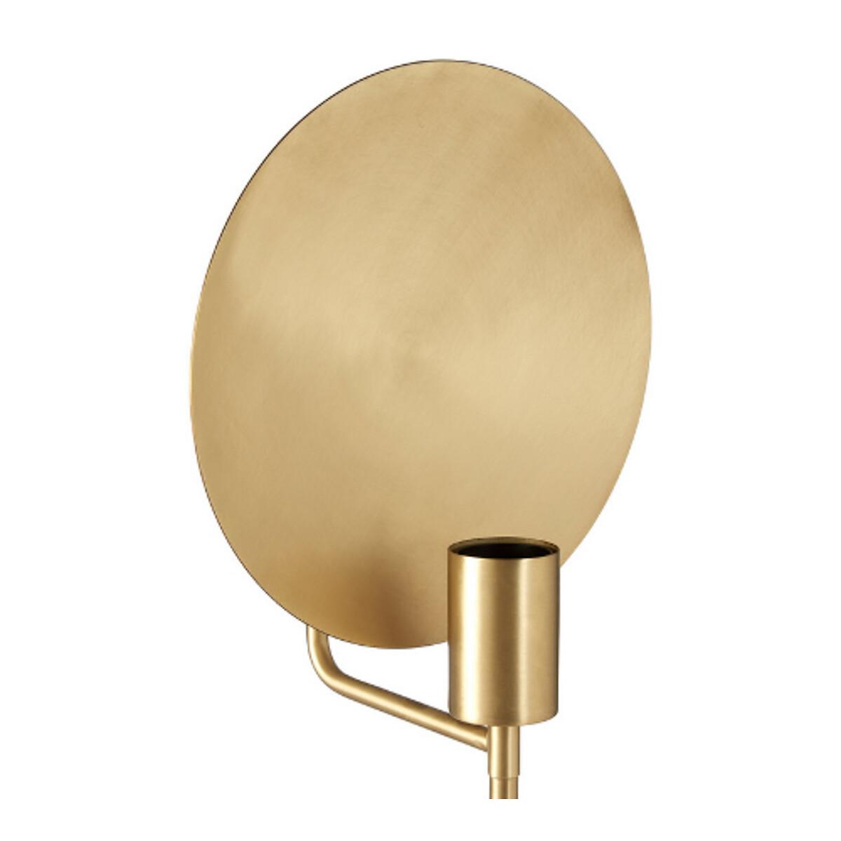 The stand is made from iron and features a brushed brass finish that complements warm toned metallic design themes. The brass tones will be accentuated when the lamp is lit, thanks to the large disc positioned directly behind the bulb fitting. This piece adds a touch of luxe sophistication to interiors. Bulb not included. Bulb required: E27 40WDimensions:. H 47 x W 23cm. This product will be dispatched by one of our trusted suppliers. You’ll be contacted by their selected courier about your delivery.