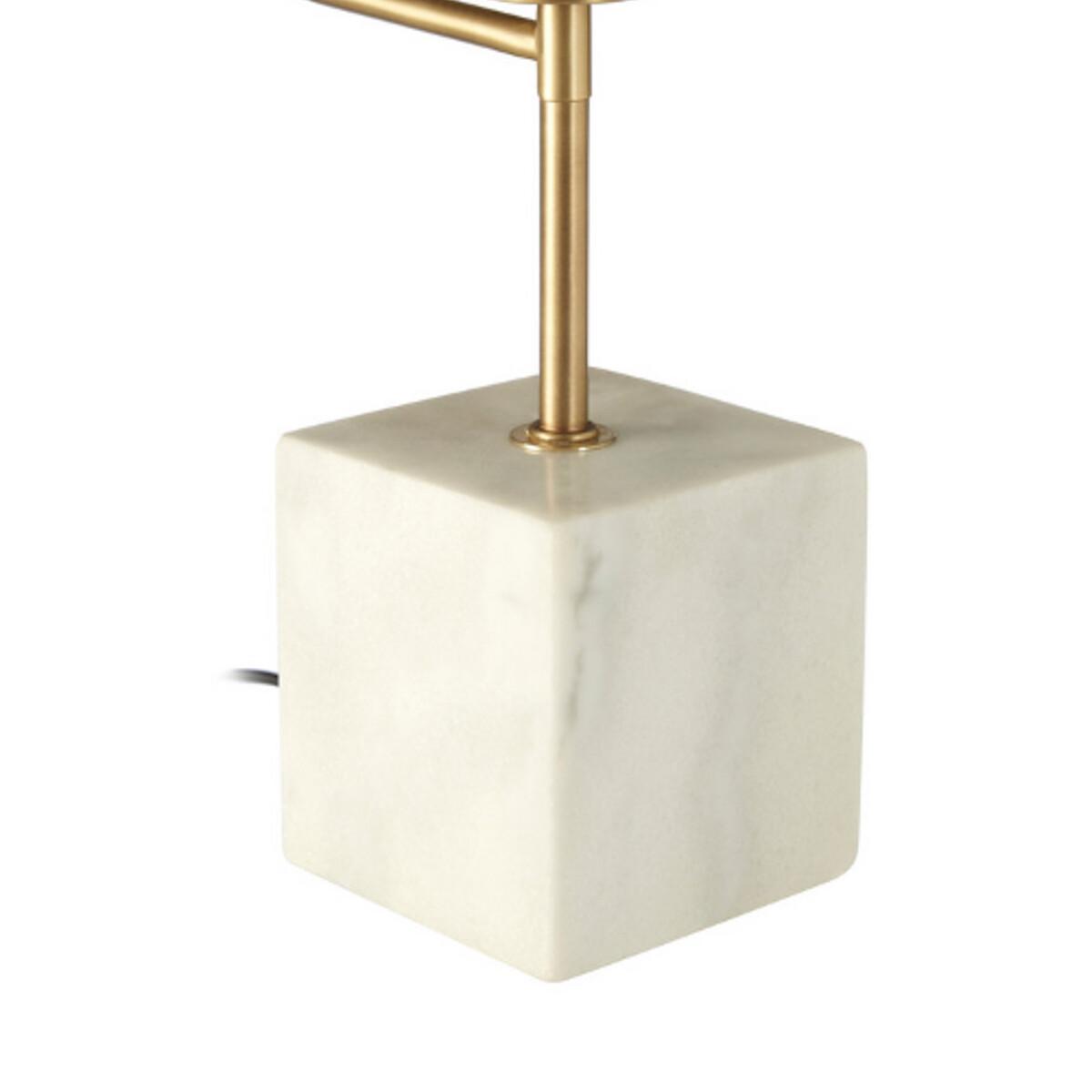 This lamp offers a striking combination of materials and finishes that instantly elevates a variety of interiors. I love its clean geometric aesthetic and how the marble base grounds the piece, making it suitable for both classic and contemporary settings. In a minimalist or modern space, it adds a touch of luxe without feeling overpowering, while in vintage or eclectic rooms, it can serve as a statement piece that brings in just the right amount of glamour. For styling tips, consider pairing it with neutral or monochromatic palettes to let the gold accents shine, or use it alongside darker woods and deep colours for a sophisticated contrast. It works beautifully on side tables, console tables, or even as a desk light, providing both style and function.
